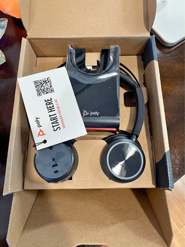 Selling brand new Poly wireless headset with active noise canceling, USB connection, and crystal-clear mic. Adjustable noise levels, smart mute alert, and super comfy for all-day use. Up to 19 hours talk time, 60m range. Comes with charging stand. Available for pick up!