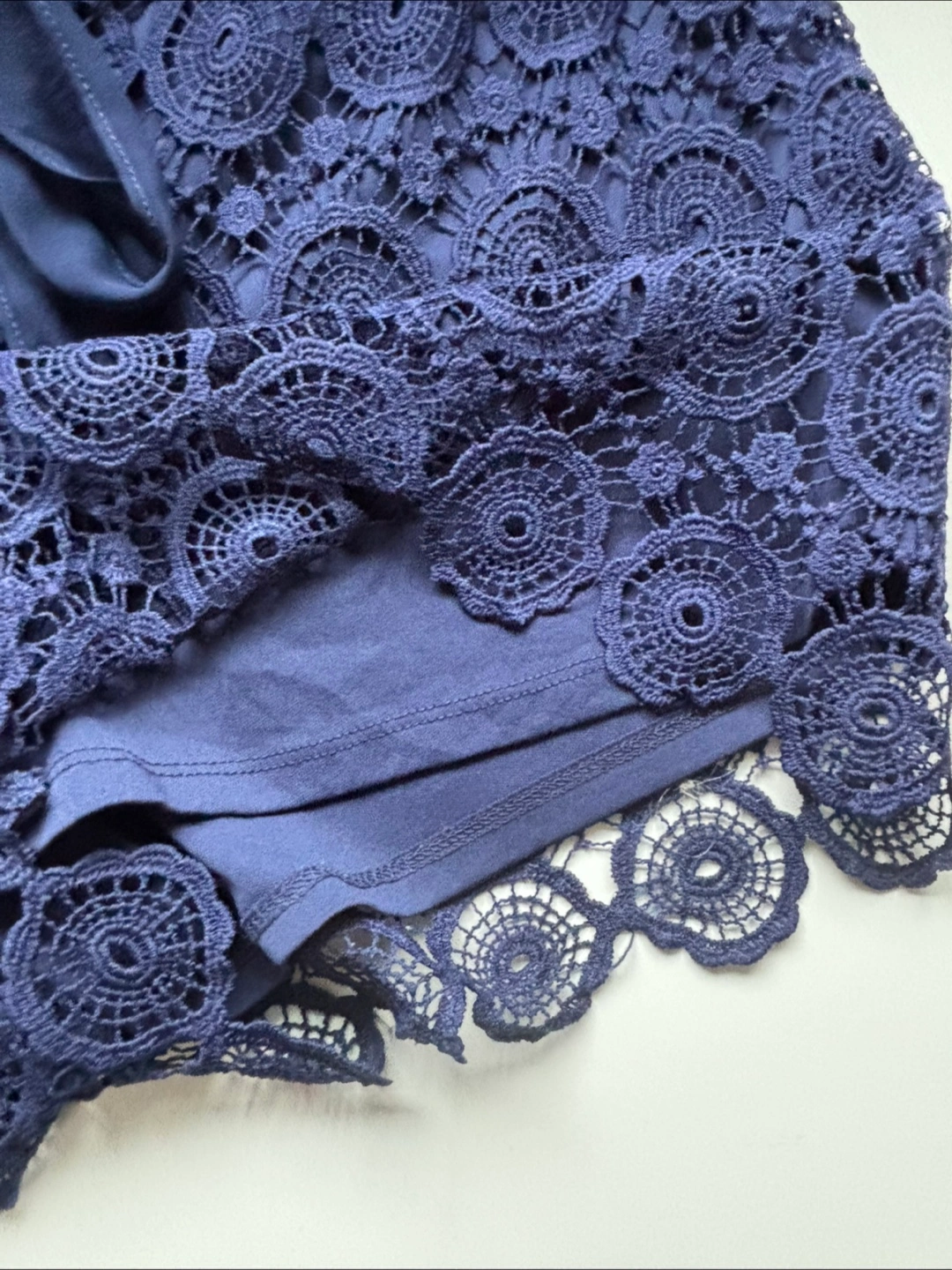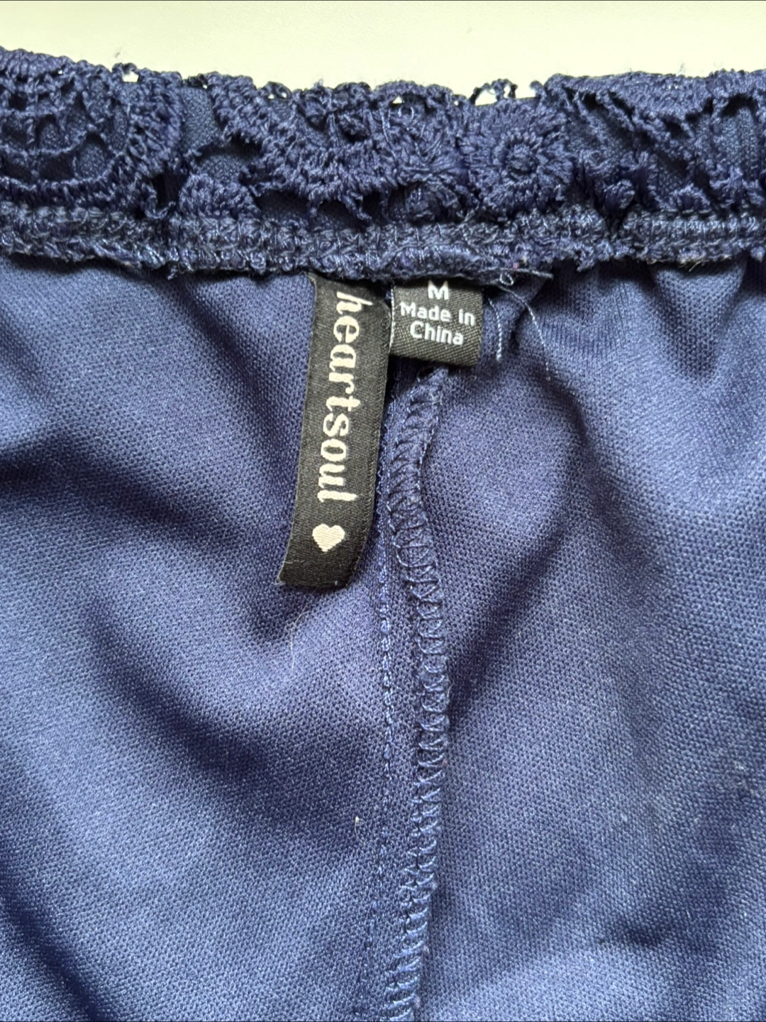 Cute pair of HeartSoul blue lace shorts in size medium! These shorts feature a delicate lace overlay and a comfortable elastic waistband. Perfect for a casual summer day!