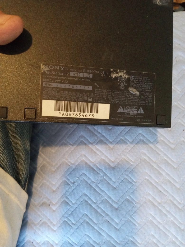 this is PlayStation 2 it's missing the plug and everything else but the whole PlayStation game system is in good shape good condition I'm sorry don't have the plug don't have the accessories don't have everything but I did check the same PlayStation without accessories without the plug and this type of shape in New York City and book off they wanted exactly 300 mine is only exactly 100