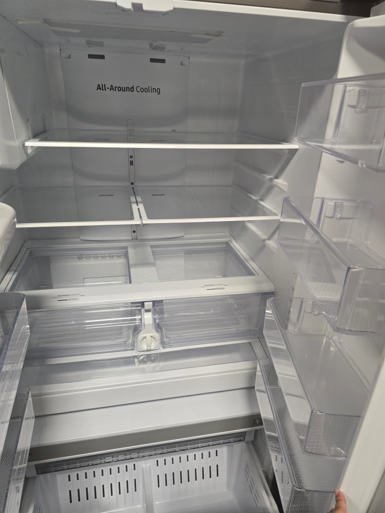 Selling a Samsung French door refrigerator in great condition! It features all-around cooling to keep your food fresh. The interior is spacious with adjustable shelves and clear drawers for easy organization. It also comes with warranty