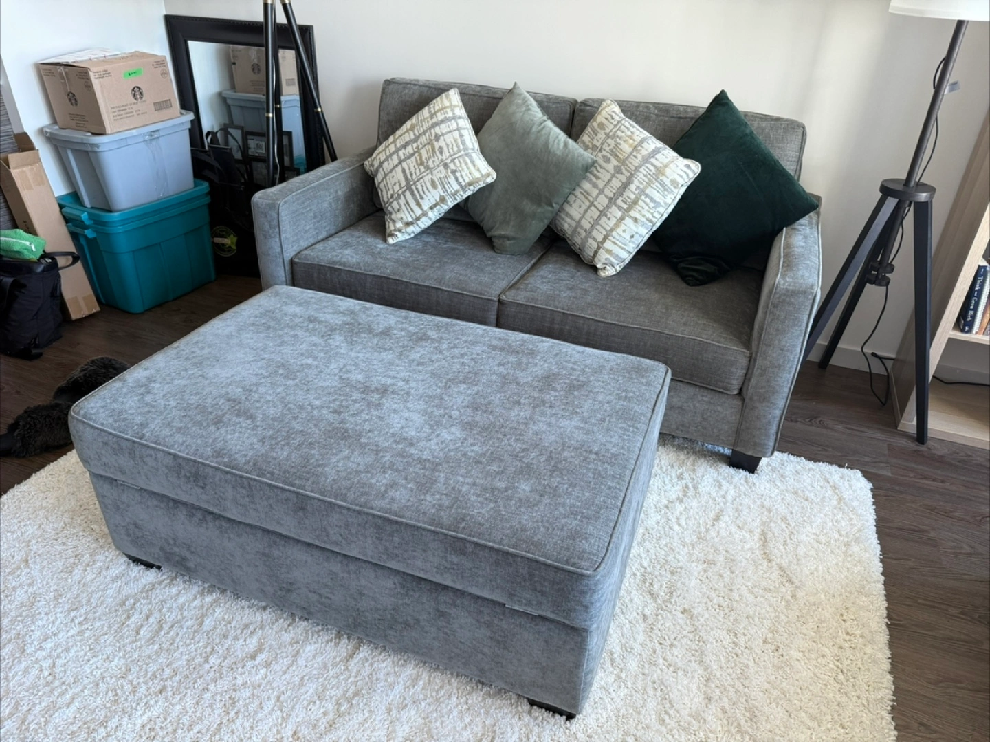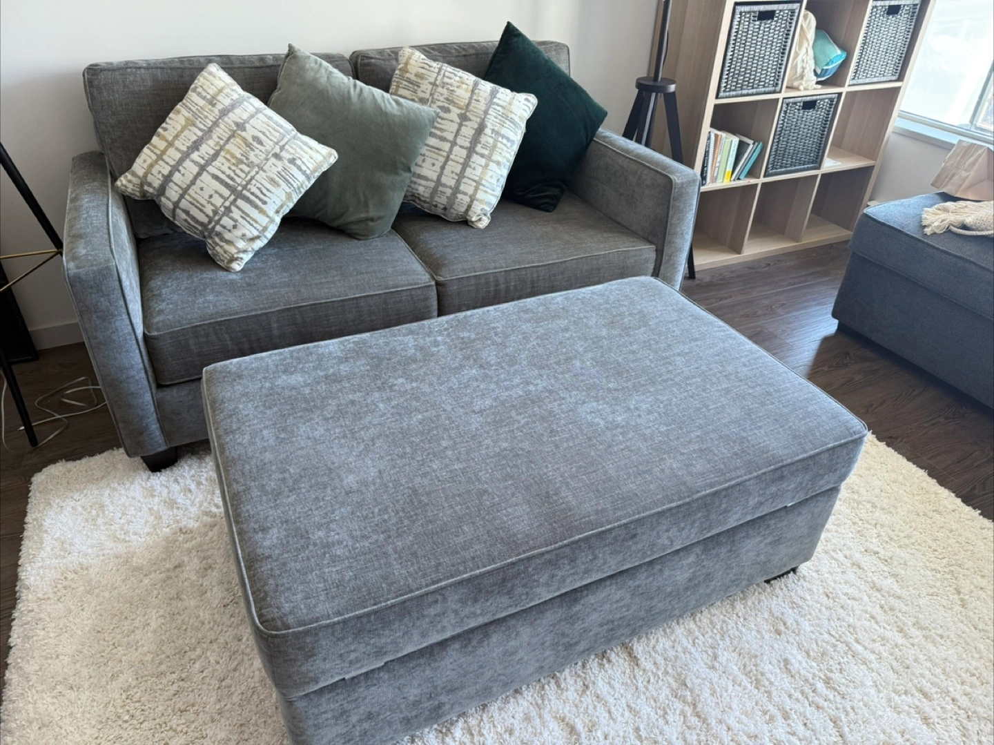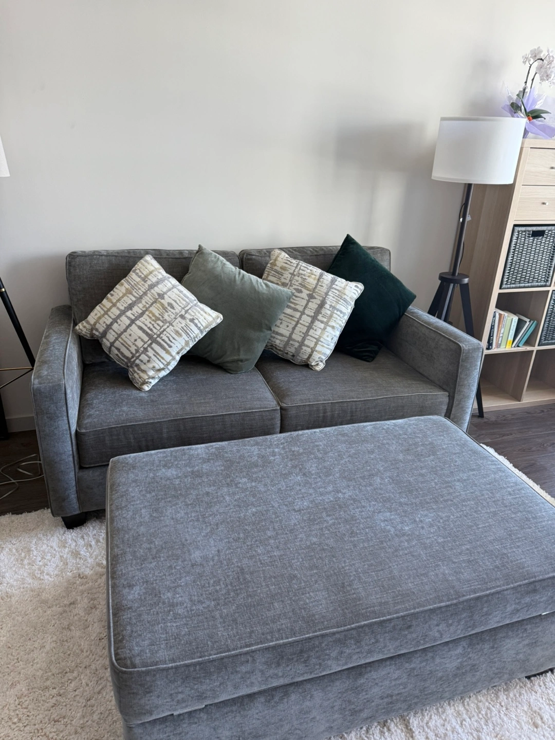 Selling this gorgeous and super comfy sofa with a huge matching ottoman with storage.