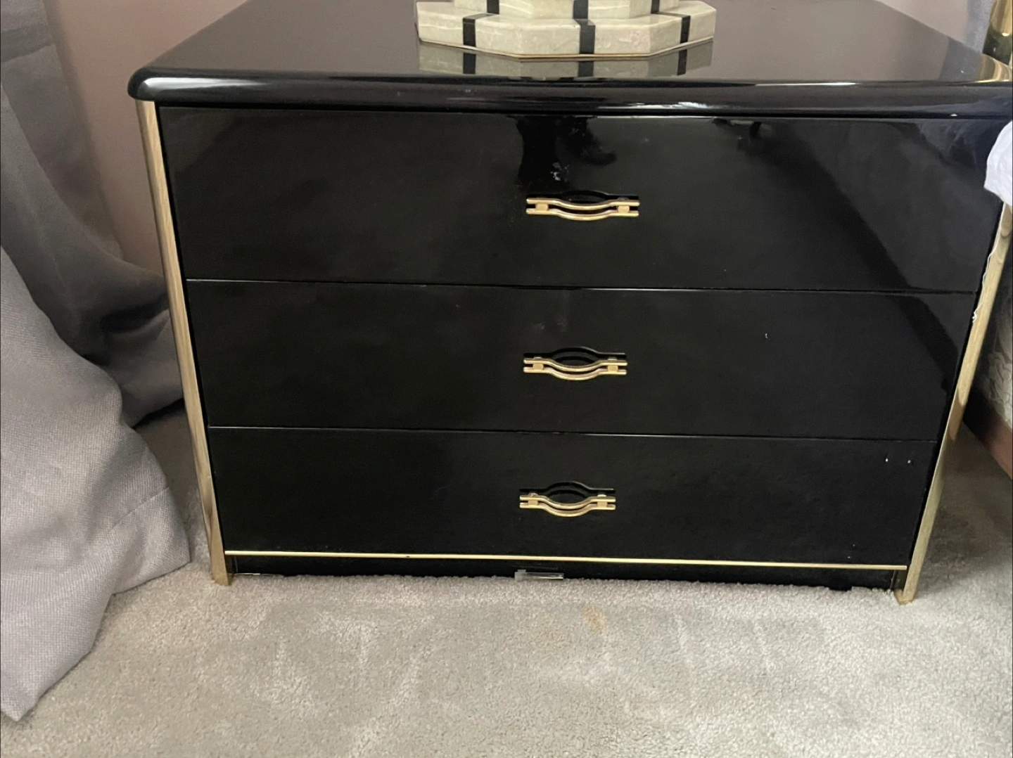 Includes wardrobe, set of drawers, side tables, matching mirrors and hallway table.