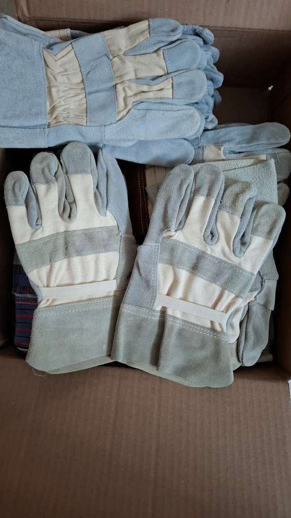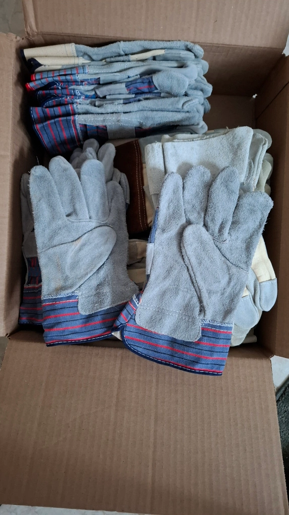 232I have a box of mostly new work gloves in assorted styles. There are 23 pairs. Size L $3 each or $45 for all. Price is firm.