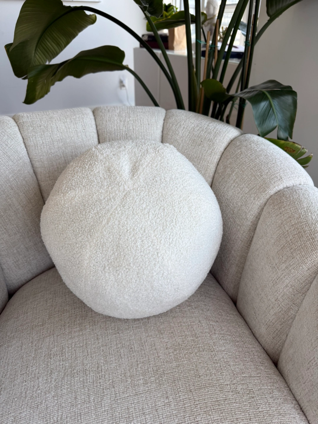 Add a touch of cozy charm to your space with this round decorative pillow! It's a lovely creamy white colour and looks great on chairs, sofas, or beds. Perfect for adding a bit of texture and comfort to any room