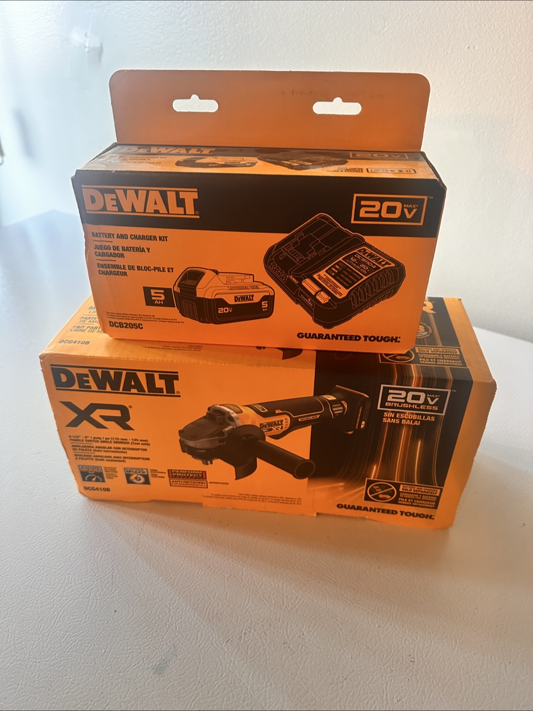 Selling a DeWalt battery and charger kit along with a DeWalt XR angle grinder. Both come in their original boxes. Guaranteed tough, these are ready for your next project!