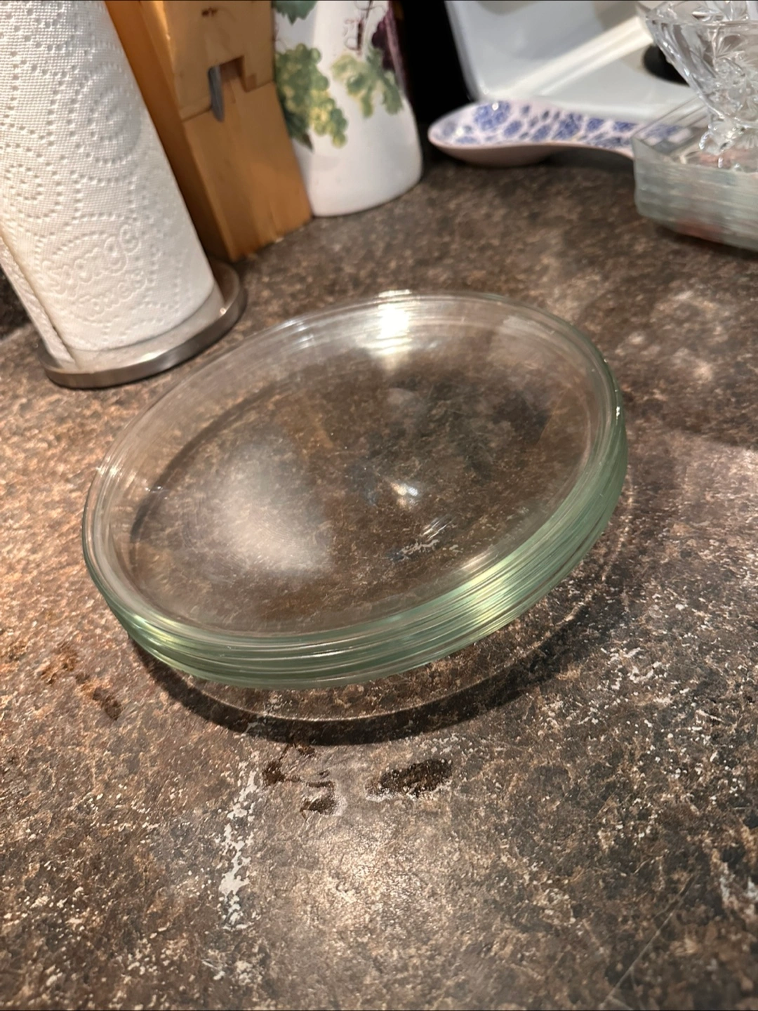 Selling clear glass plates It's in great shape and ready for your next baking adventure! It's a versatile addition to any kitchen