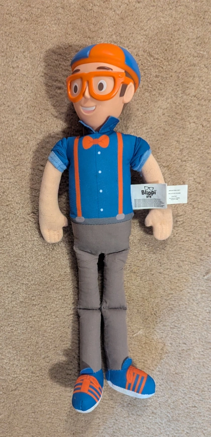 Here's a cute Blippi plush doll! It's in great condition and ready for a new home. Perfect for any Blippi fan! Interactive and says phases