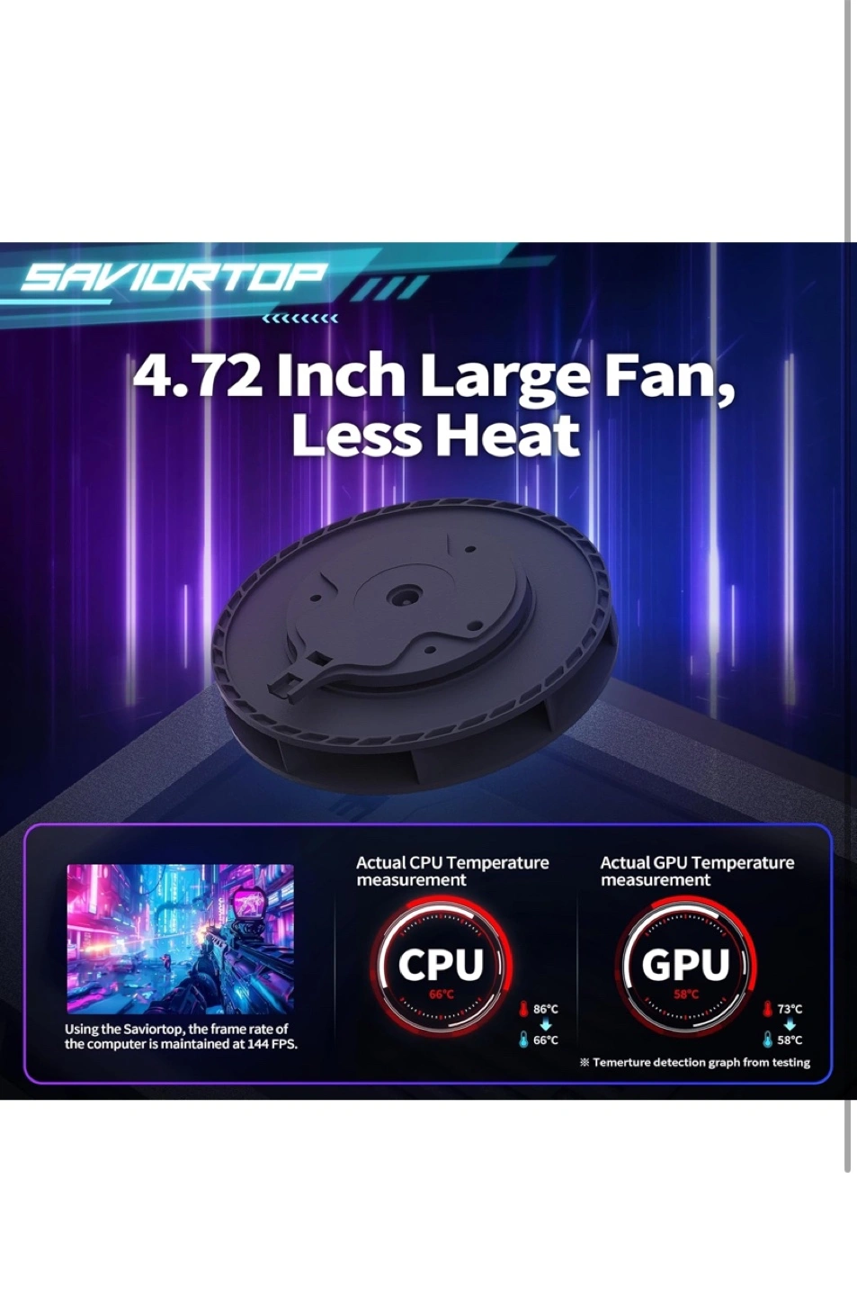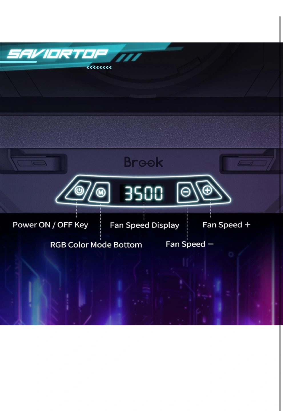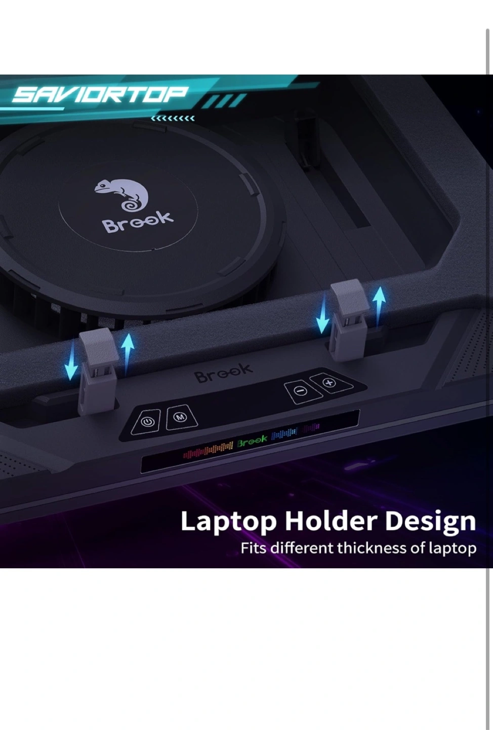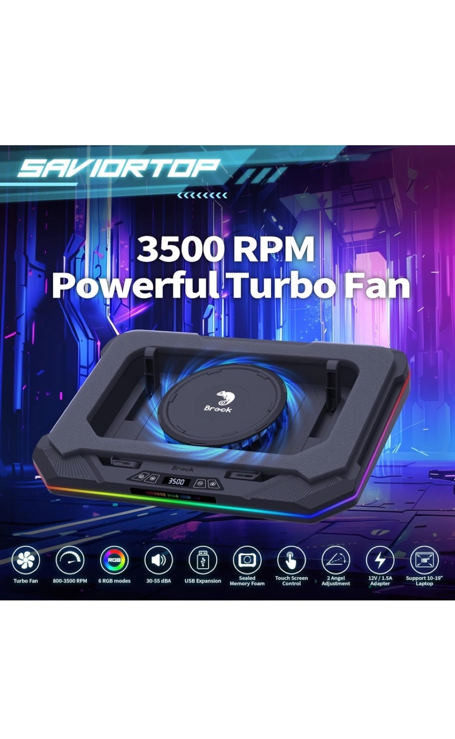 Brook Saviortop Gaming Laptop Cooler, IC Core Cooling Pad with Advanced Turbo Fan, Fast Cooling for Laptops 10-19in, Adjustable Speed, Touch Control, USB-C & USB-A Ports, Compact & Portable Design
