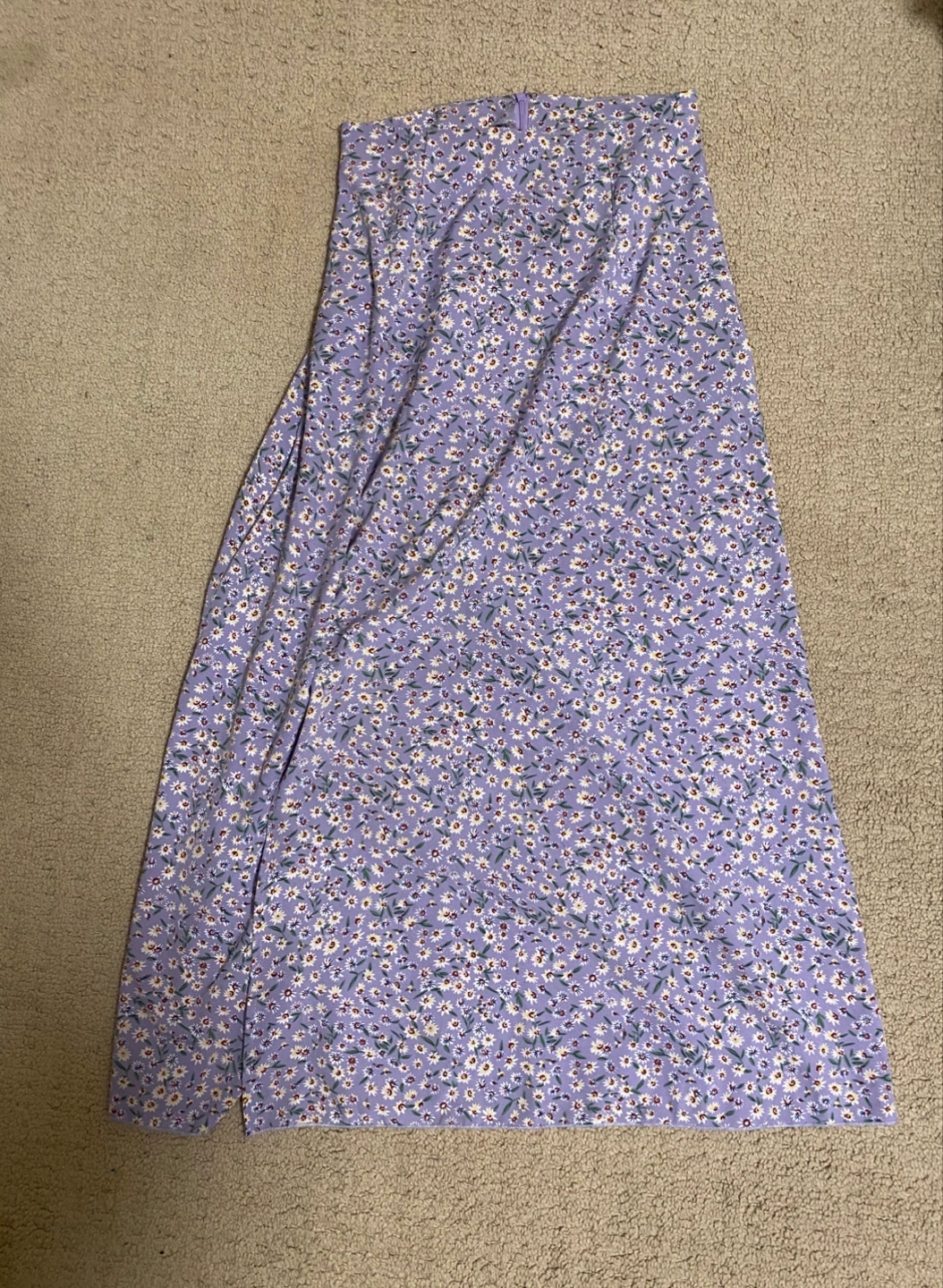 Selling a cute Shein floral skirt in size small! The skirt is in great condition and features a lovely floral pattern on a light purple background. It's perfect for a casual day out or dressing up for a special occasion. The skirt has a flattering fit and is made from a comfortable material. It also has a slit.
