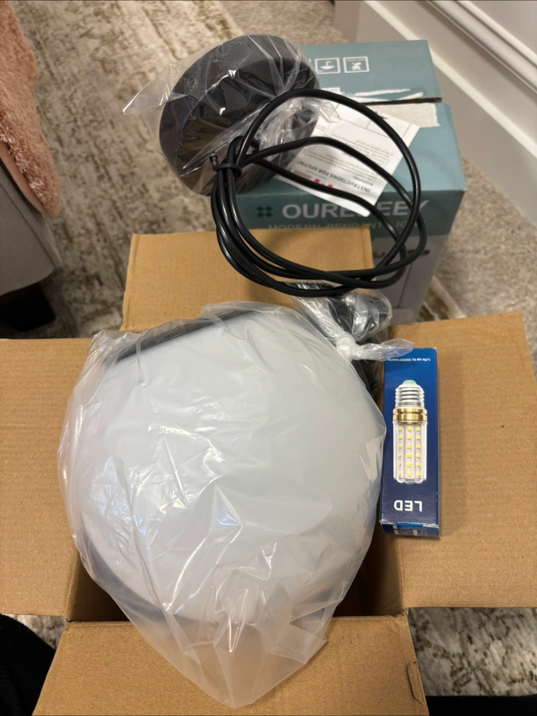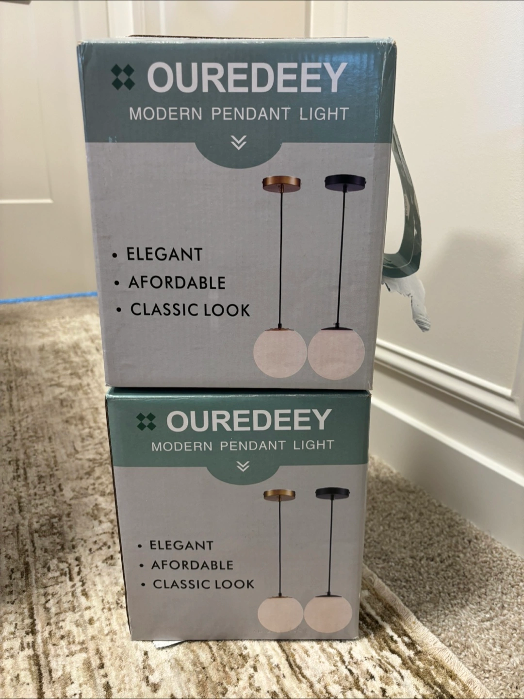 Selling 2 brand new Ouredeey modern pendant light, still in its original box! It features an elegant, affordable, and classic look. Perfect for adding a touch of style to any room. Comes with all components, including the LED bulb.