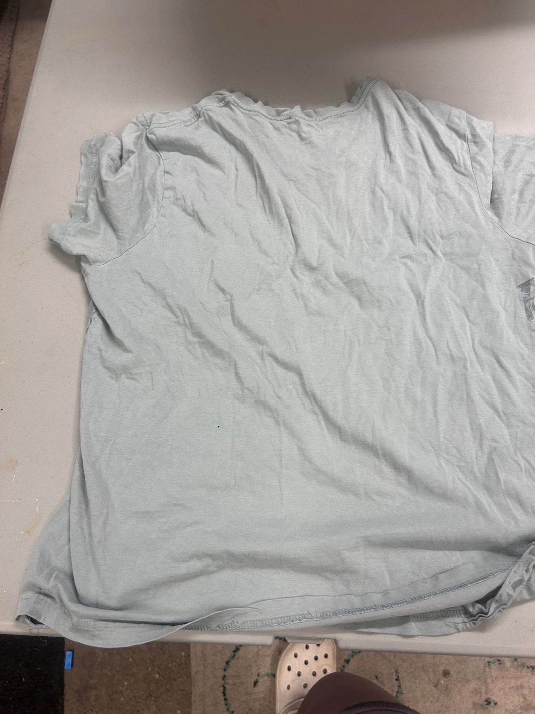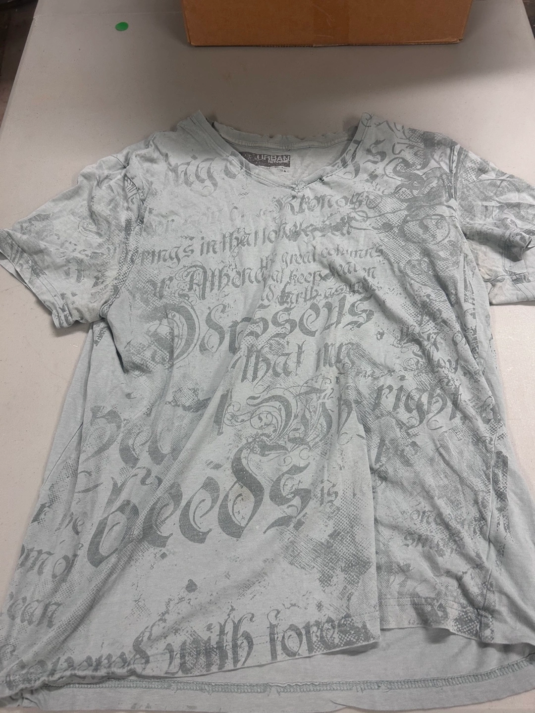 Here's a light blue URBAN brand T-shirt. It has a unique design with lettering and patterns. It's in good condition and ready for a new home!