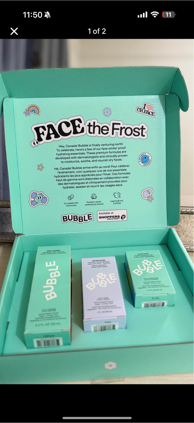 Selling a brand new Bubble Face the Frost kit! It includes a few of Bubble's favourite winter-proof hydrating essentials. These premium formulas are developed with dermatologists and clinically proven to moisturize, soothe, and nourish dry faces. The box is also included!