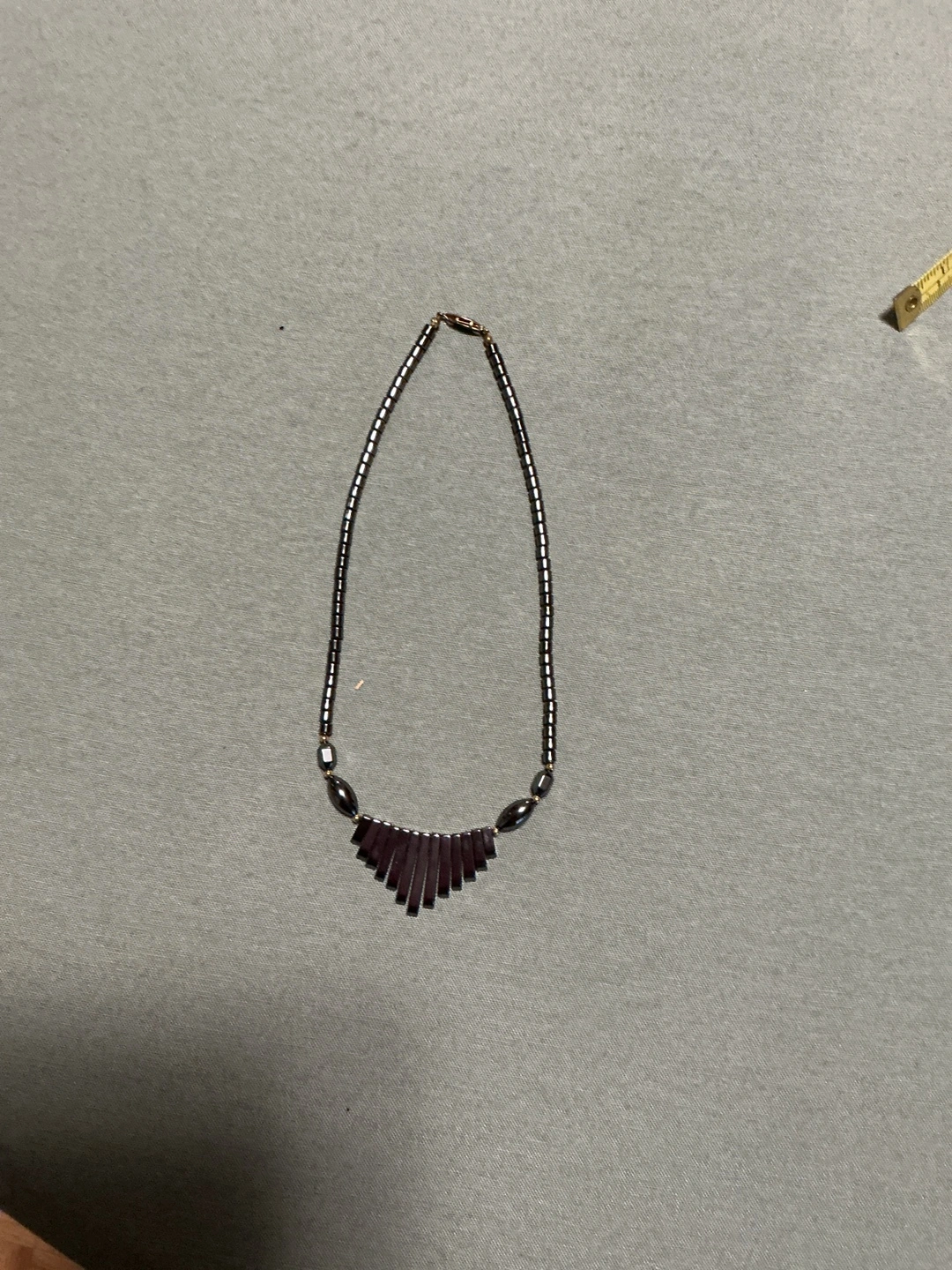 Selling a hematite beaded necklace. It's in great condition and would be a lovely addition to any outfit! This was a favourite piece for a long time. Very classic and classy.