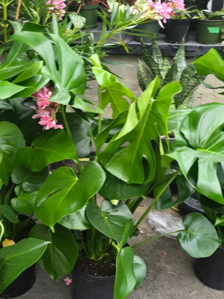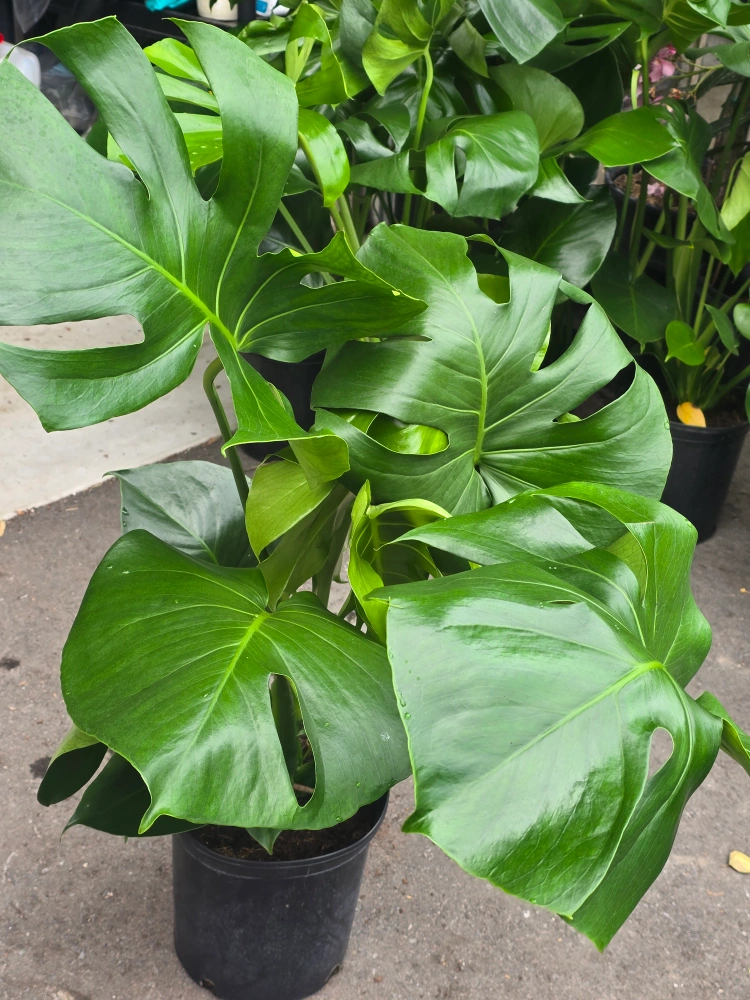 257I'm selling a Monstera Deliciosa plant. It has vibrant green leaves and is in a black pot. This plant would look great in your home!