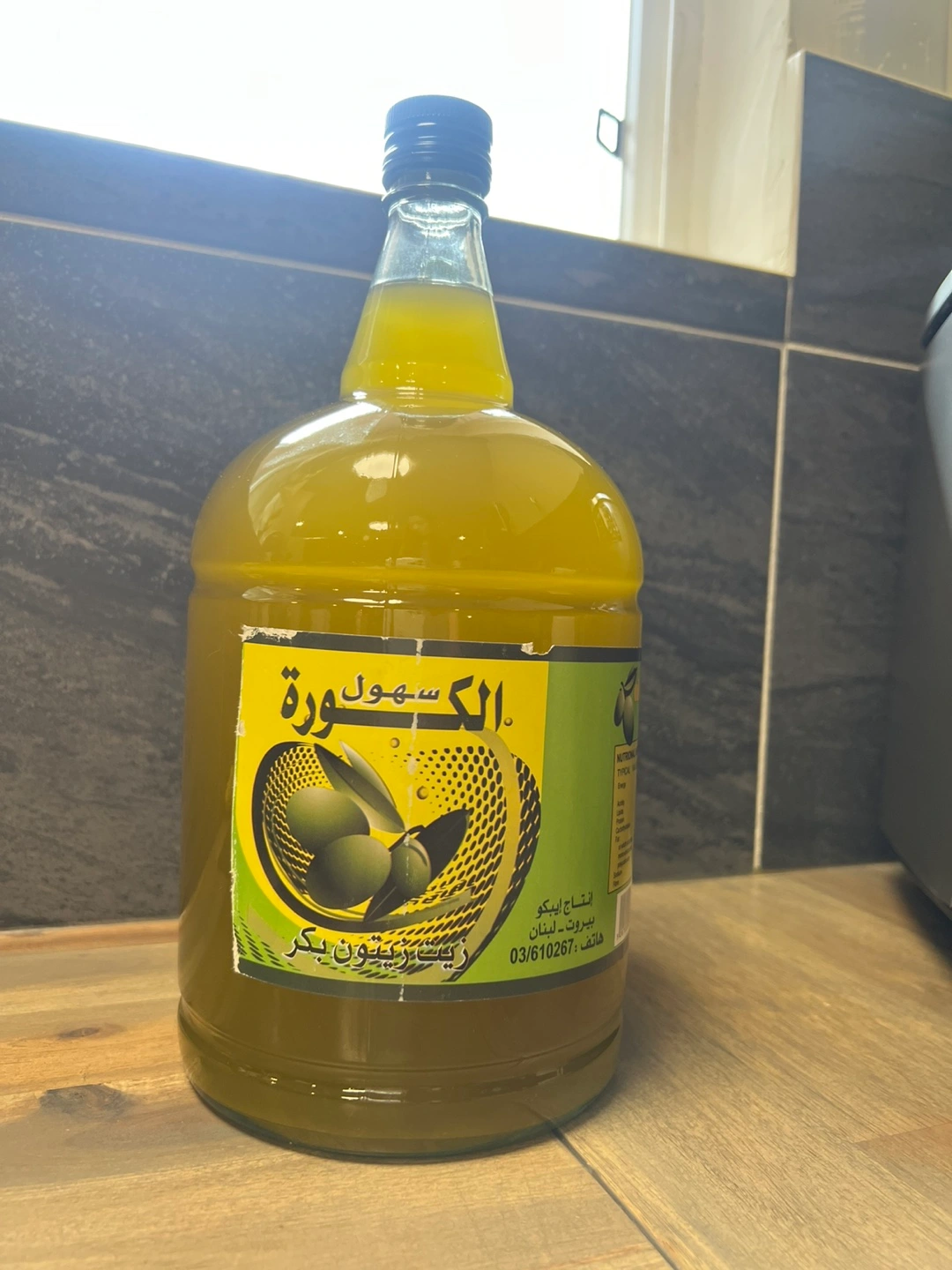 Organically produced and pressed in Lebanon, a 3L bottle (unopened) extra virgin olive oil. Amazing for cooking, salads, taste, add to spices such as thyme (see other listings for thyme). This is the same “El-Koura” brand as now, just newer labels. PICK UP LOCATION: Marlborough.