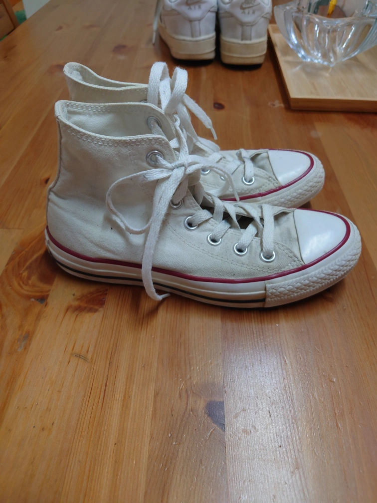 Selling a pair of Converse Chuck Taylor All Star high top sneakers. They're a classic style and in good condition, perfect for everyday wear!