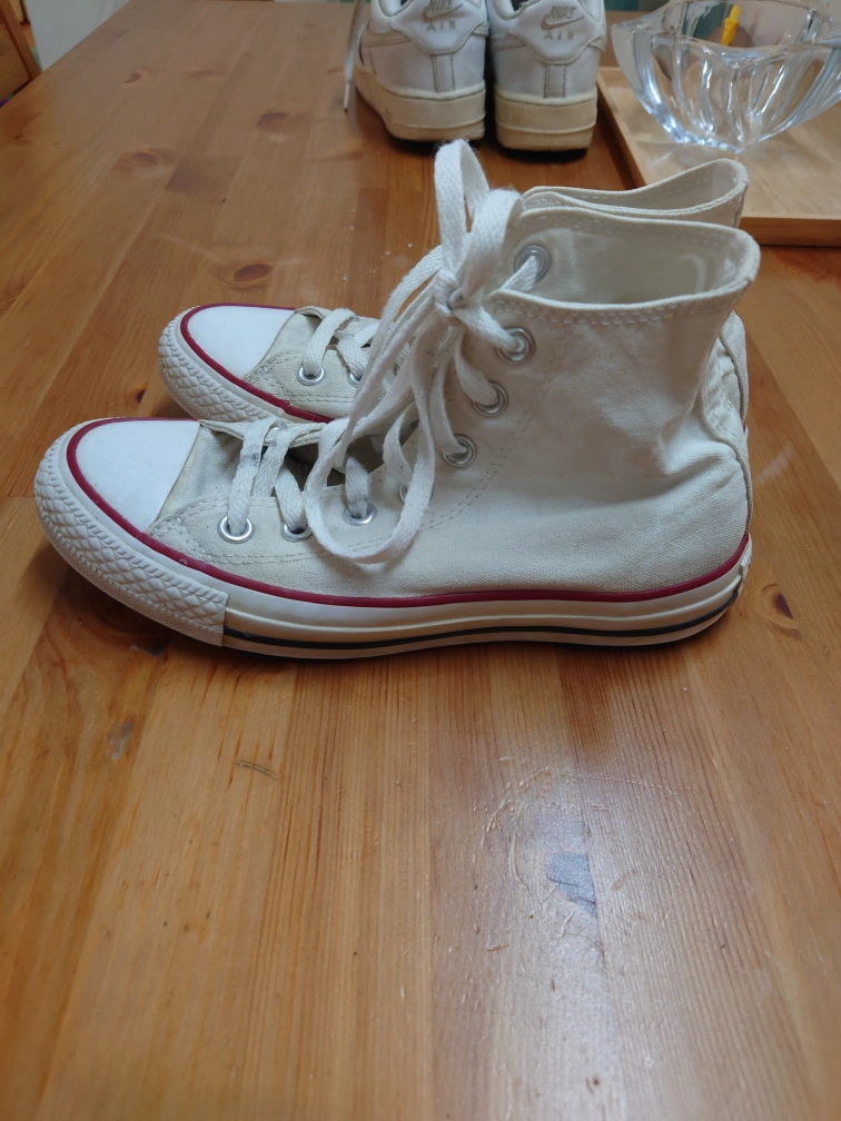 Selling a pair of Converse Chuck Taylor All Star high top sneakers. They're a classic style and in good condition, perfect for everyday wear!