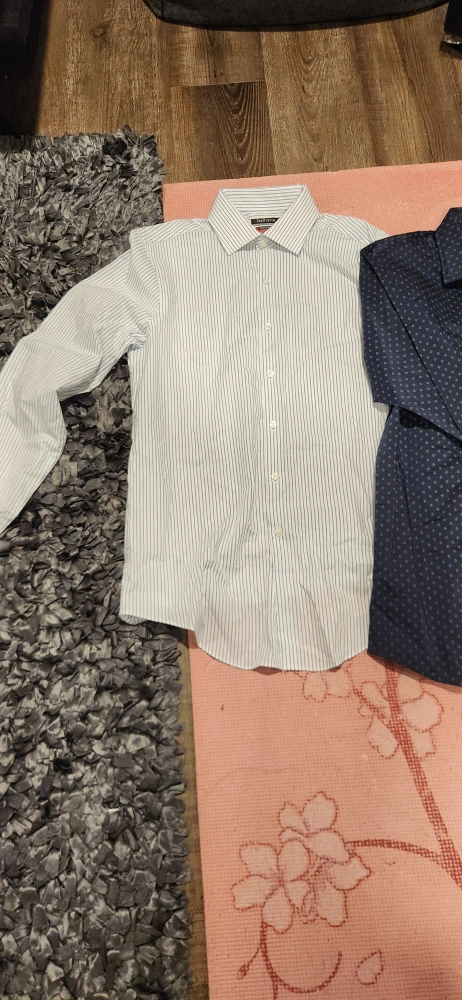 Brand New. Here are two dress shirts for sale! One is a navy Van Heusen dress shirt, and the other is a white and blue striped dress shirt. The Van Heusen shirt is size 16-16.5, and the striped shirt is size 15 1/2 34/35.