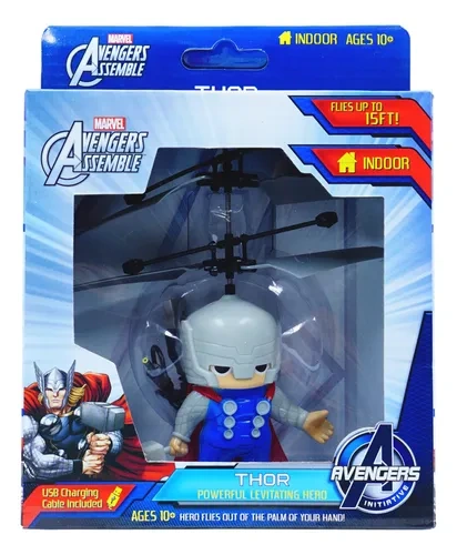 Get ready for some indoor fun with this Marvel Avengers Assemble Thor Powerful Levitating Hero! It's designed for ages 10 and up and flies up to 15 feet. The box includes a USB charging cable so you can keep the hero flying high