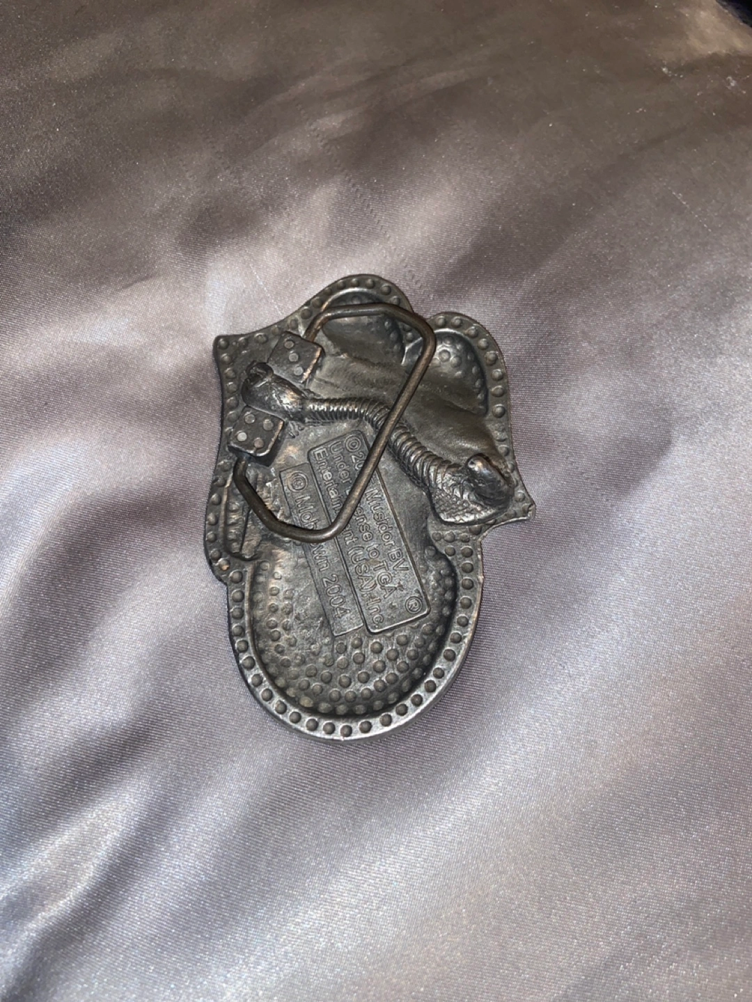 Selling a Rolling Stones belt buckle! This unique piece features the iconic tongue and lips logo. It's in good condition and ready to add some rock 'n' roll flair to your wardrobe