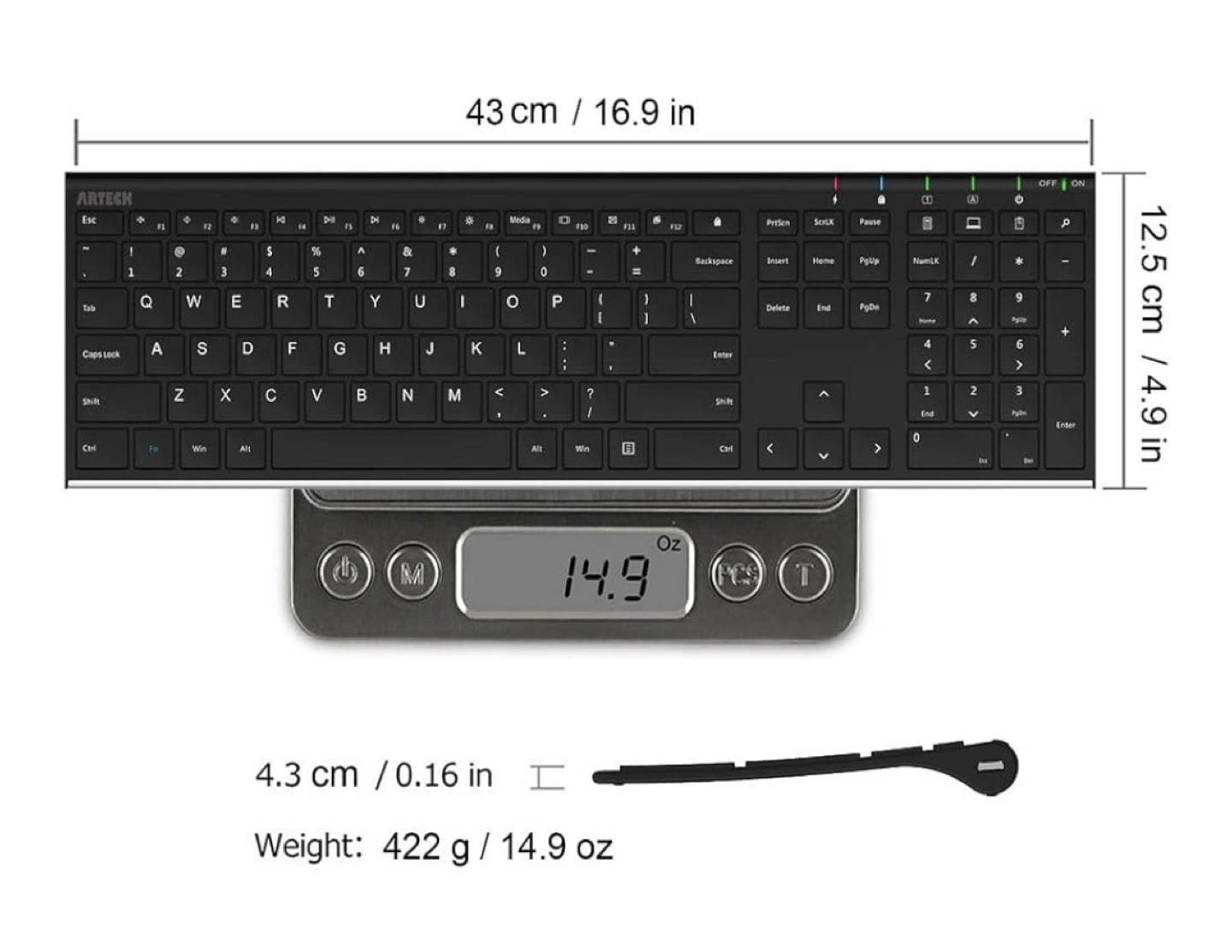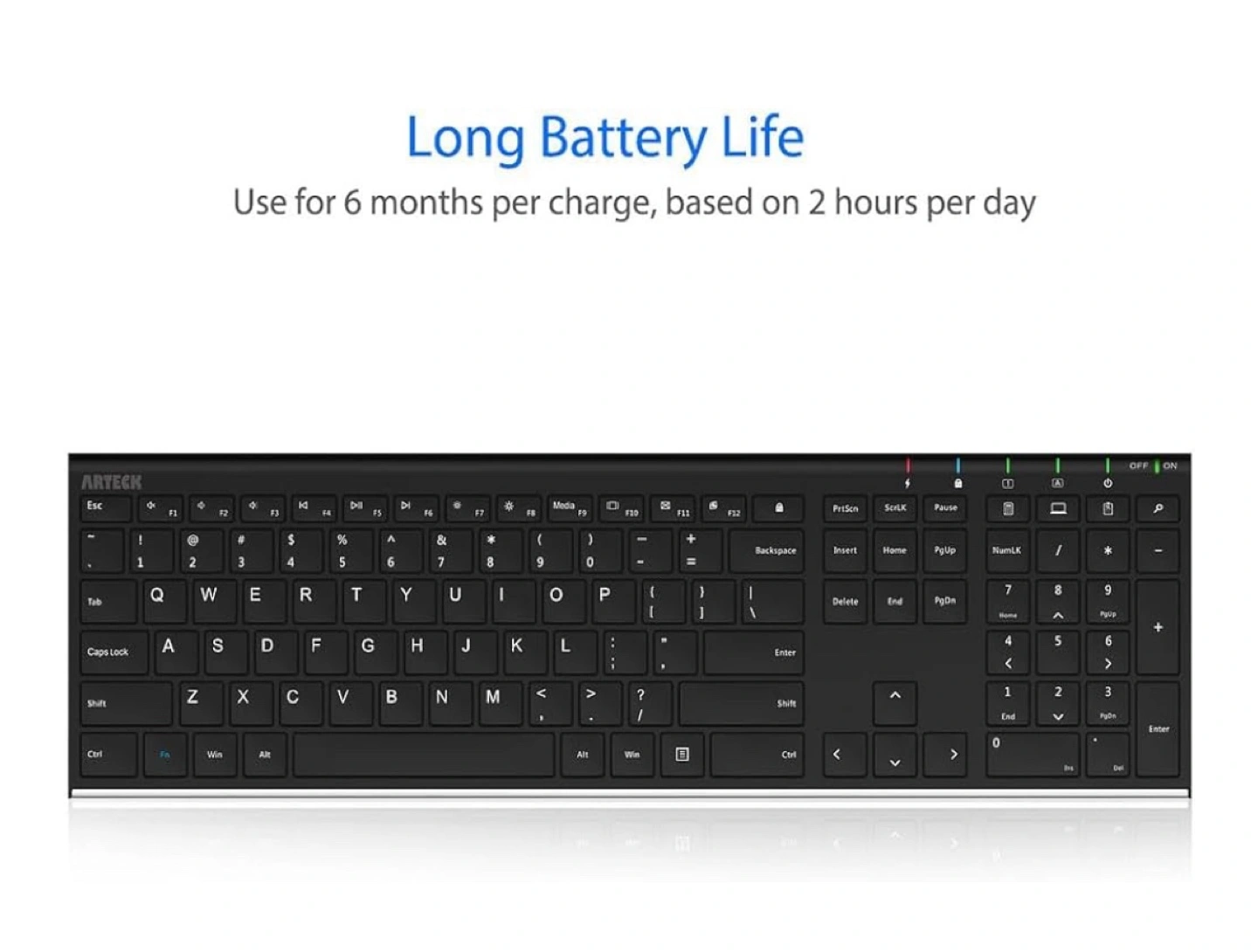 388Selling an Arteck HW192 Universal Stainless Steel 2.4G USB Wireless Keyboard. It's in excellent condition and comes with its original box! It's lightweight, weighing only 14.9 oz, and has a long battery life, lasting up to 6 months per charge based on 2 hours of use per day. Never opened
