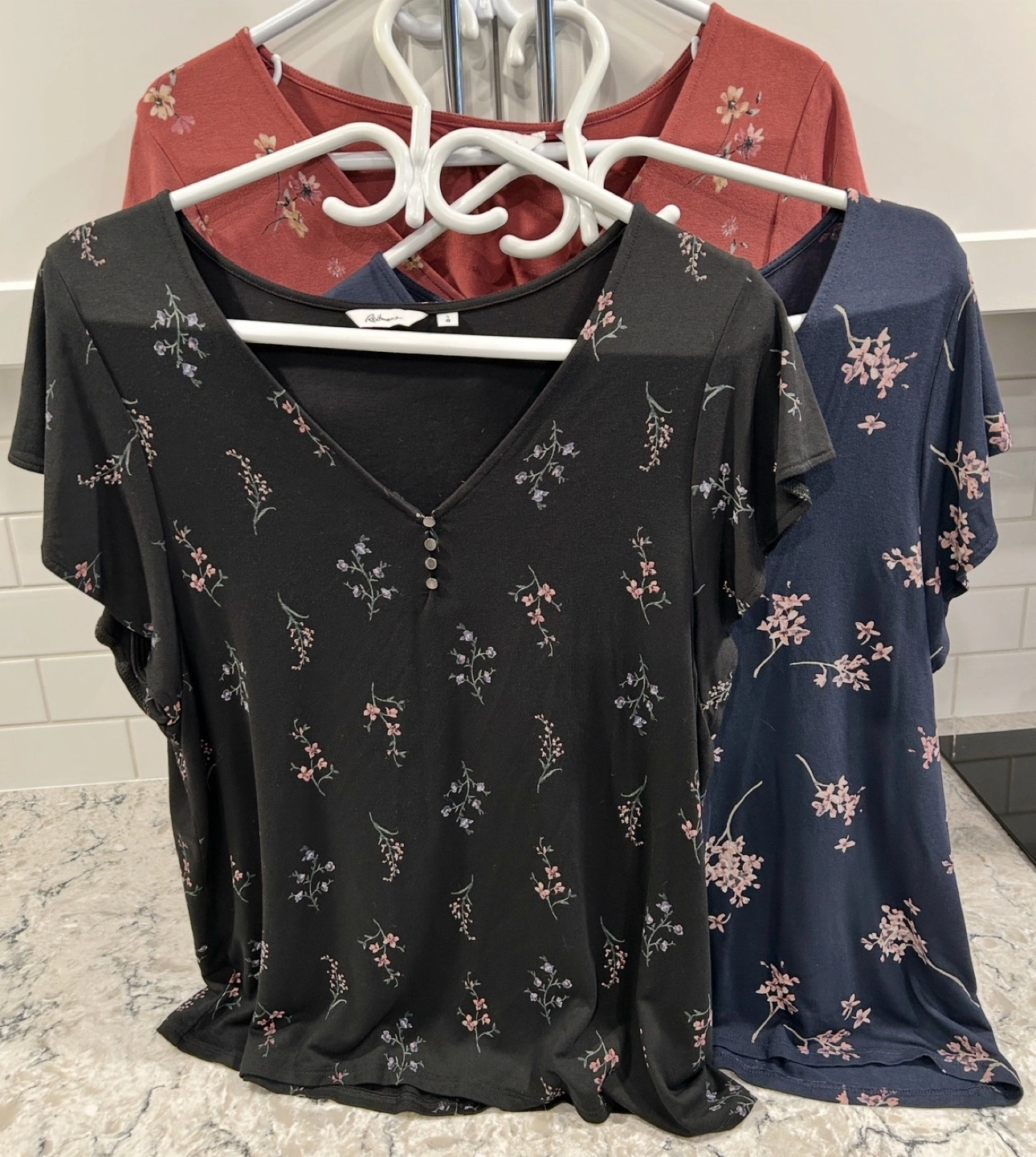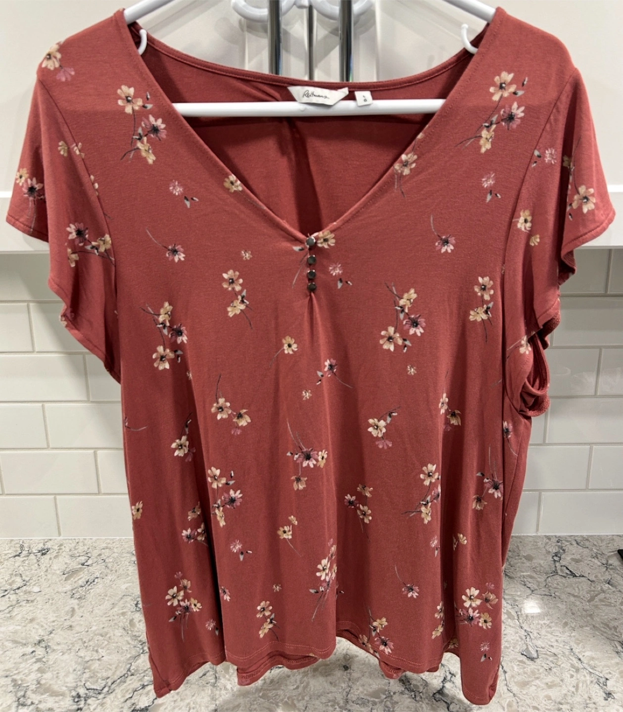 Women’s V Neck Floral Print T-Shirts With Button Neck Detail