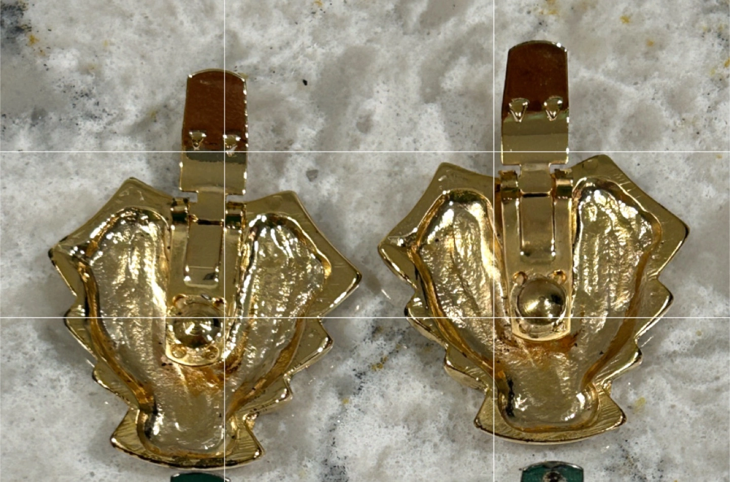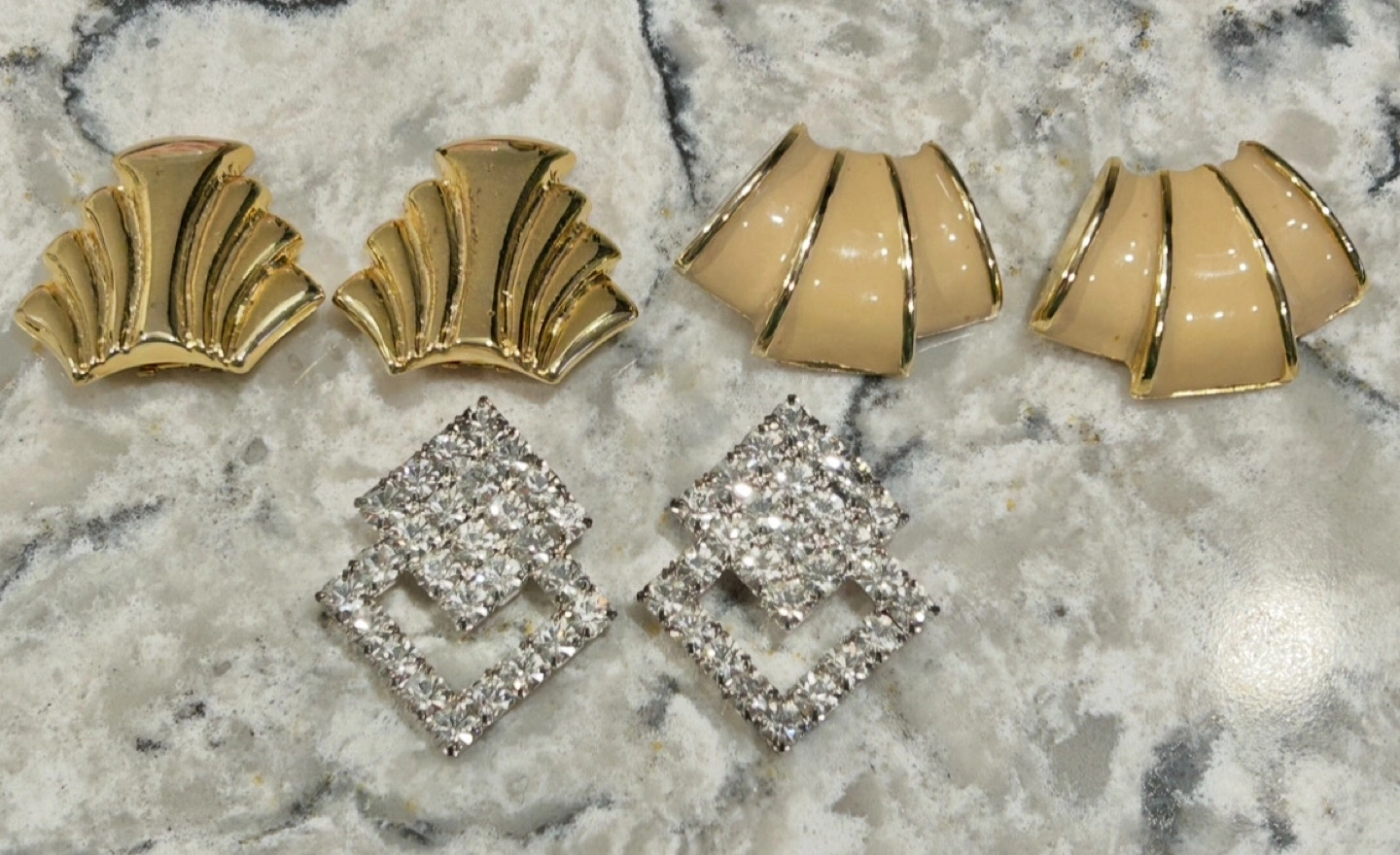 Beige/cream colored and Shiney Silver Toned Clamps are vintage Bluette clamps