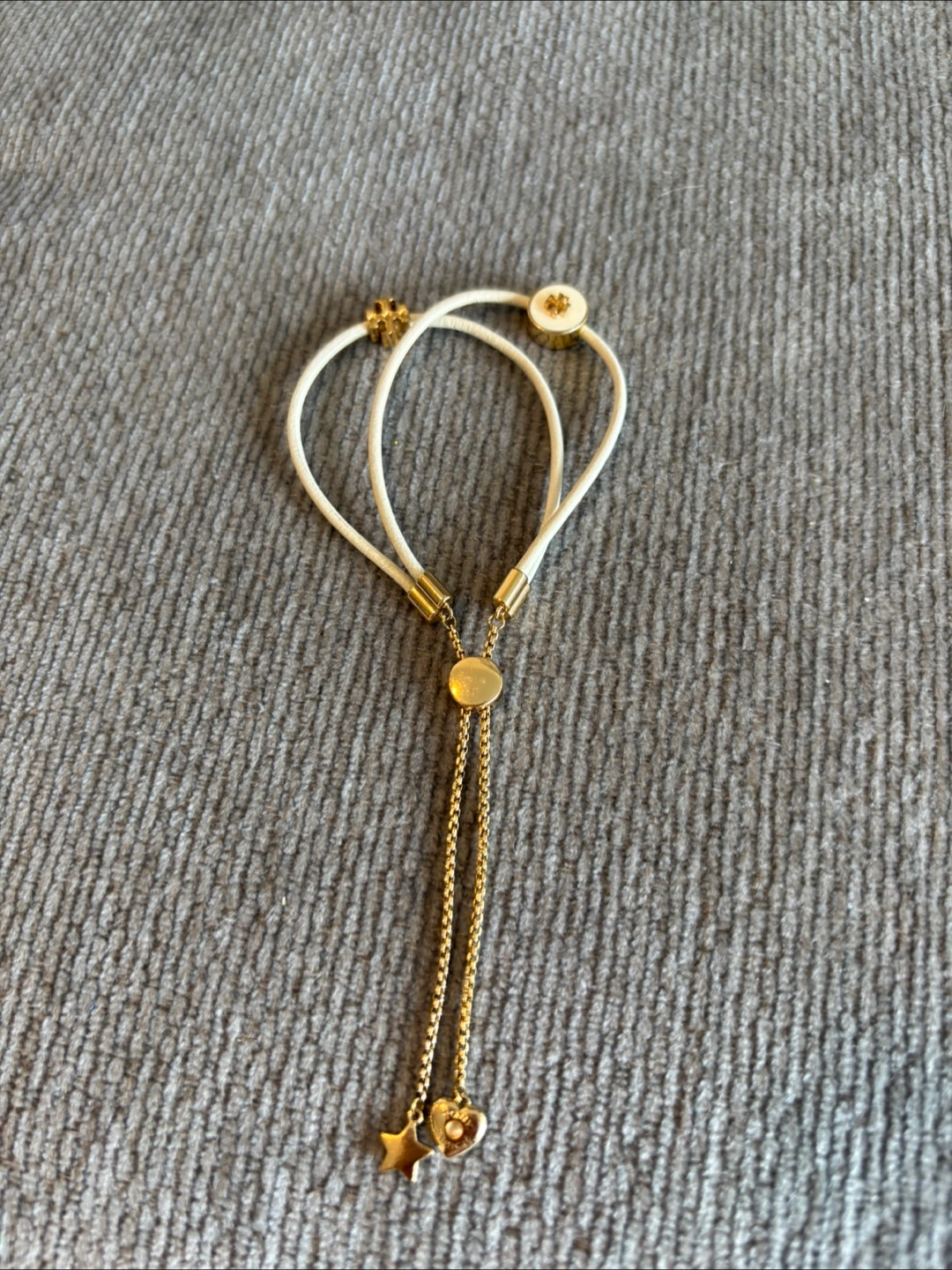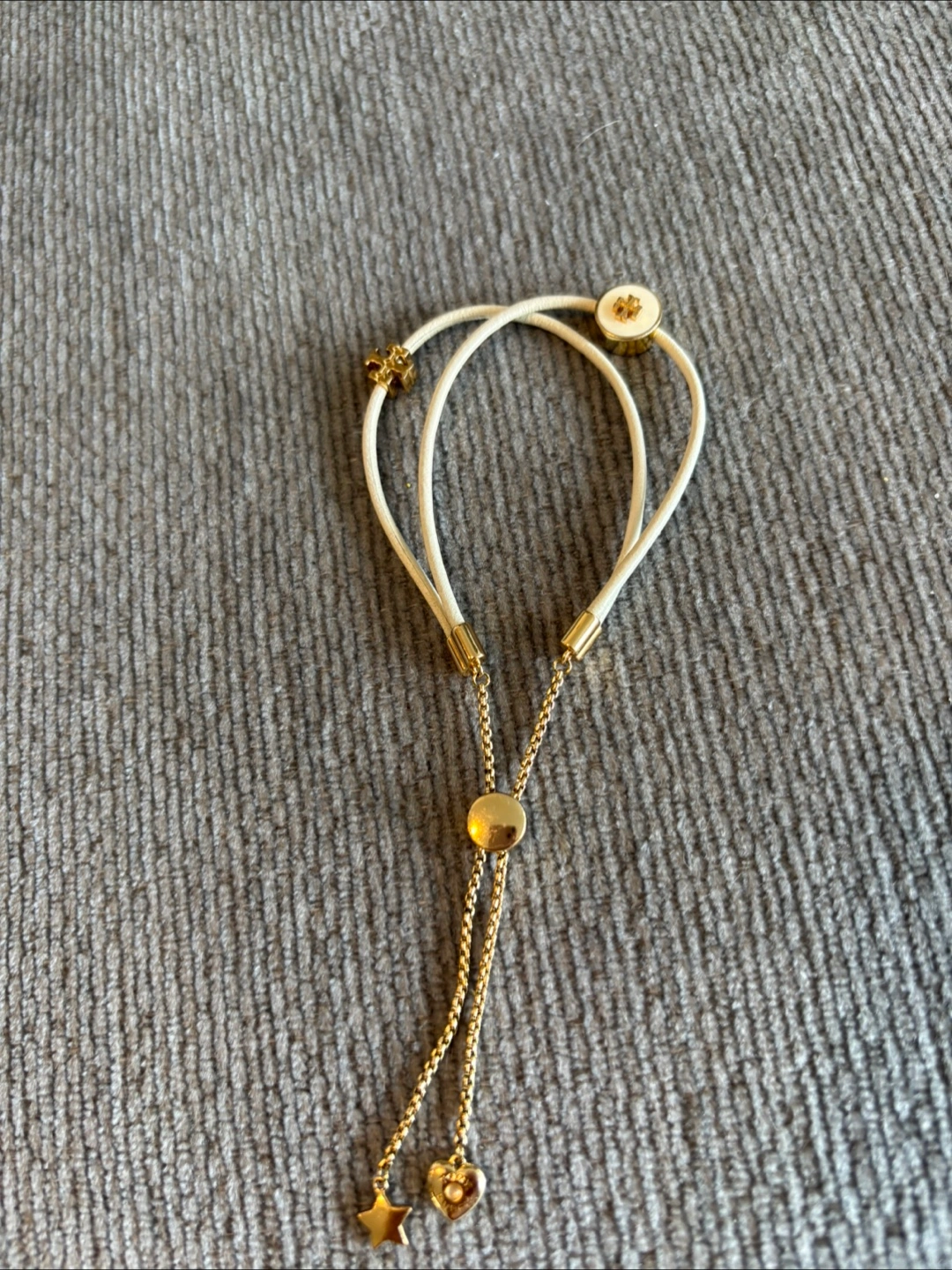 Tory Burch Kira enamelled slider bracelet, ivory colour, in good condition. Size is adjustable. Cleaned and ready to wear.