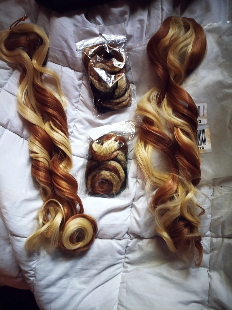 764 Packs of Honey and Platinum blonde it's like copper colour, one pack is $10 or all 4 for $30 charging $20 for all today and a free gift with purchase pick up Kipling and Lskeshore