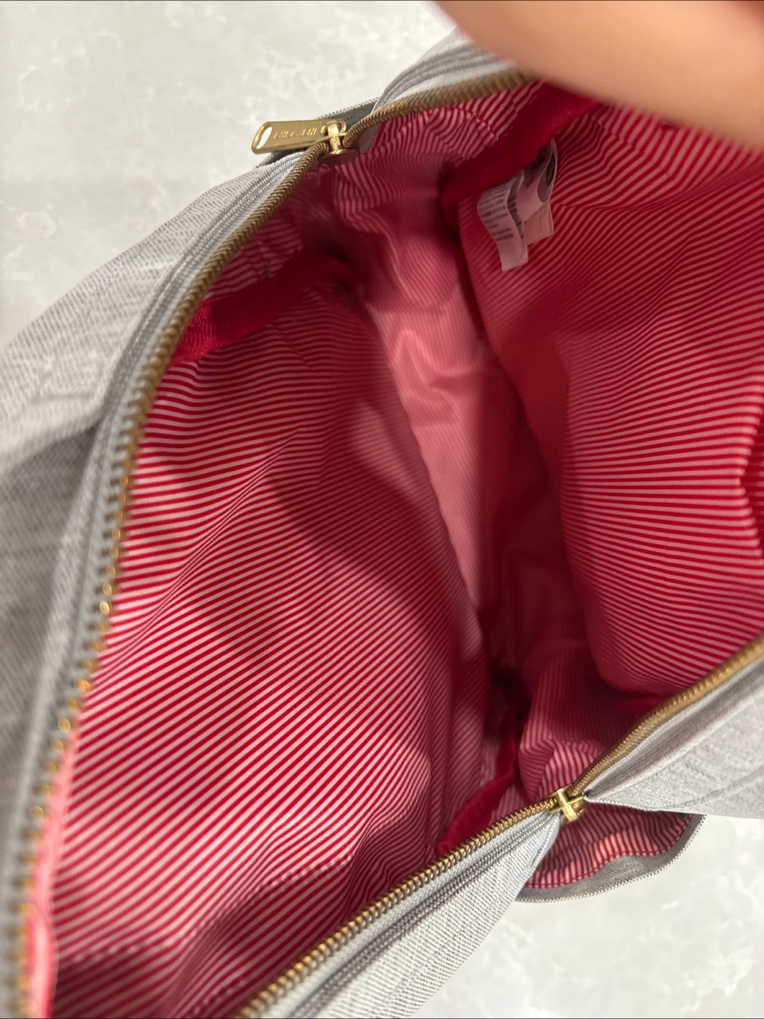 Selling a Herschel Nova Sprout Diaper Backpack in a lovely grey colour! It's in great condition and ready for a new home. Perfect for parents on the go, it combines style and functionality seamlessly. The interior has a red and white striped lining.