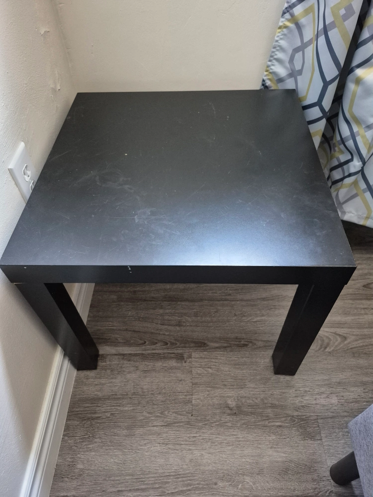 Selling a simple black side table! It's perfect for small spaces and can be used as a nightstand or coffee table. It's in good condition and ready for a new home