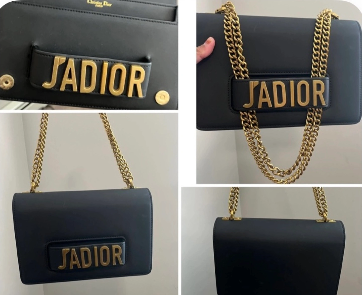 Selling a stylish Christian Dior J'Adior bag. It's a beautiful black colour with a gold chain. The 'J'Adior' logo is prominently displayed in gold lettering. A perfect addition to any wardrobe!