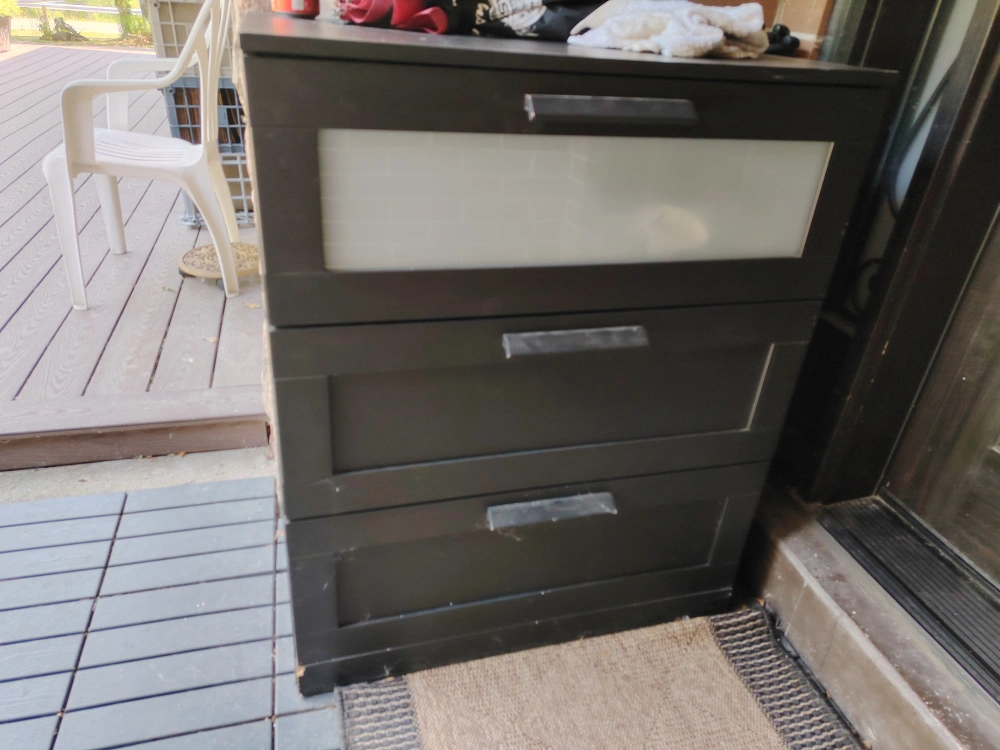 Looking to sell my IKEA Hemnes 3-drawer chest in black-brown. It's in good condition and offers lots of storage. Perfect for a bedroom or entryway!