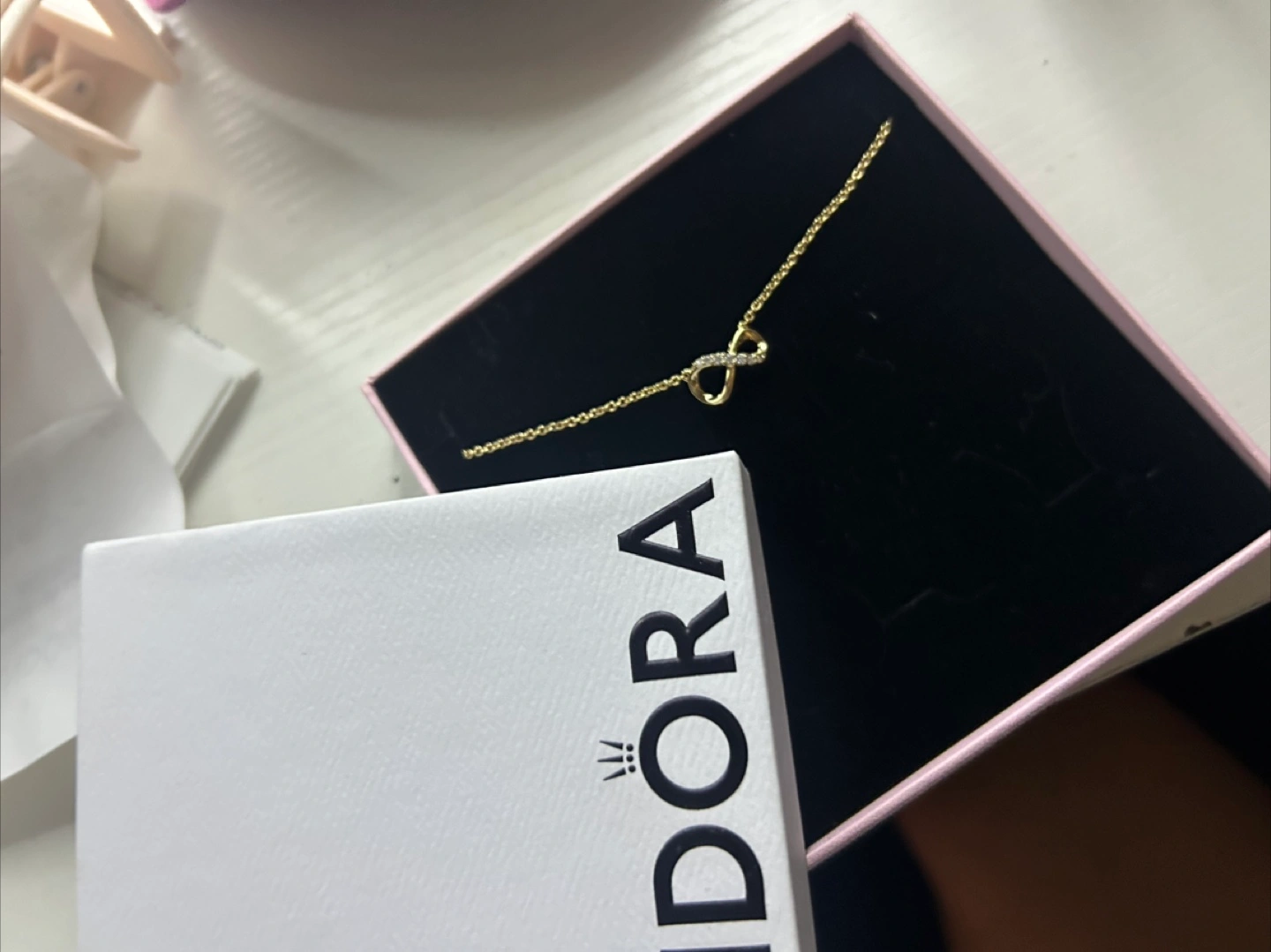 Selling a beautiful Pandora Infinity Knot necklace in gold! It comes with the original box and has never been worn. price is negotiable
