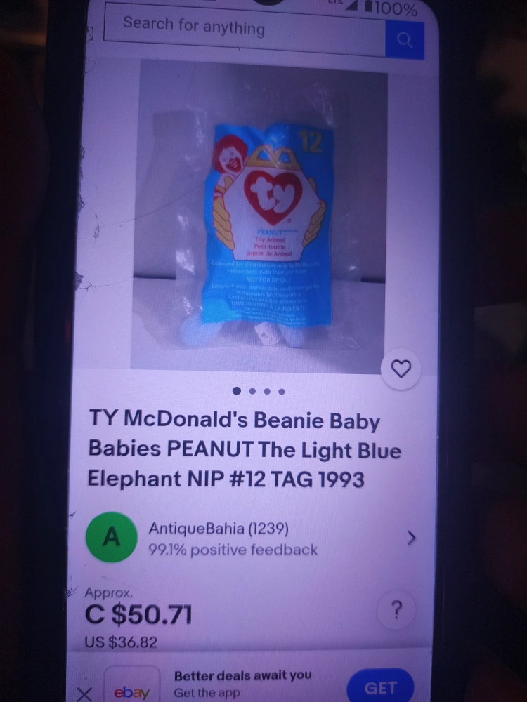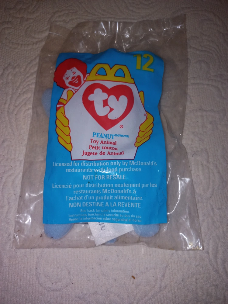 Buy & SellTY McDonald's Beanie Baby PEANUT The Light Blue Elephany #12TY McDonald's Beanie Baby PEANUT The Light Blue Elephany #12$4New in sealed package. Collectable. See all pictures provided for more information. It is selling for $50 on eBay. Check out my other listings.ConditionNew0 chats·0 favorites·10 viewsSELLERYolanda BencsikBriar Hill1000+124 reviewsWHERE TO MEETBriar Hill