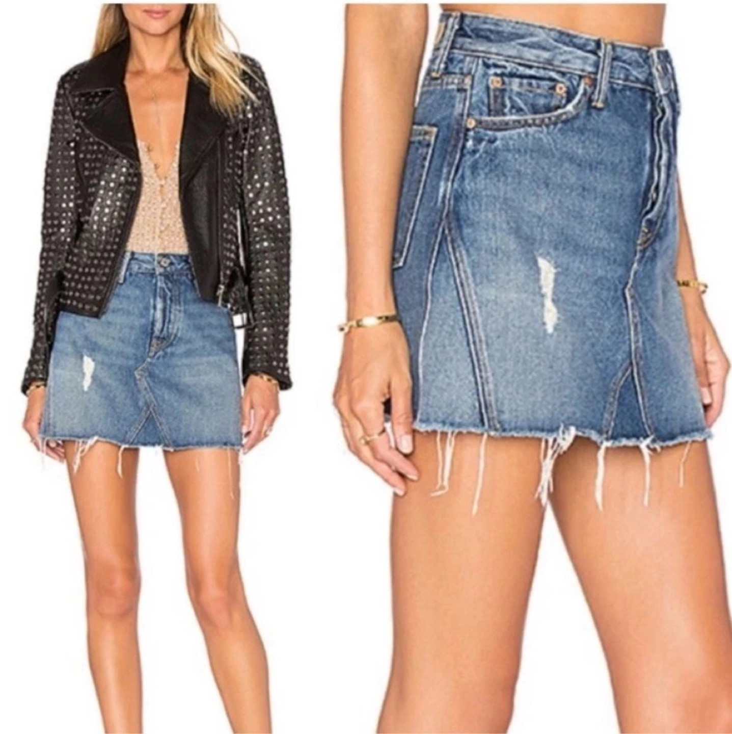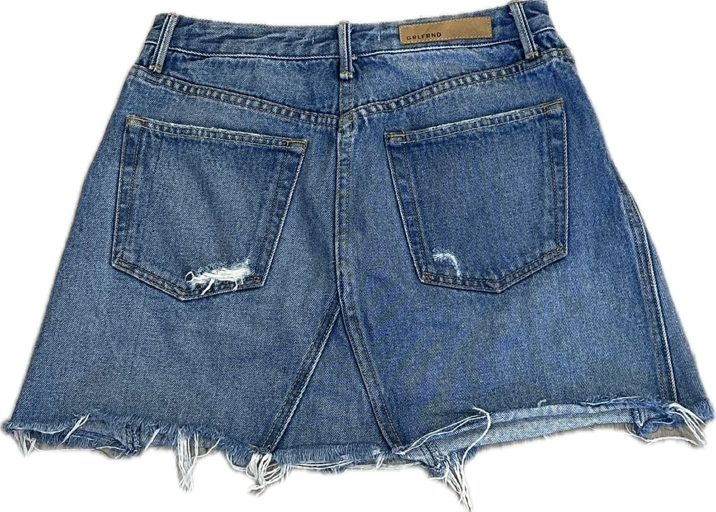 MADE FOR DENIM DAYS THAT CALL FOR A SEXIER FEEL. GRLFRND'S EVA DENIM SKIRT HAS YOU (SLIGHTLY) COVERED. THE HIGH WAISTED, MINI SILHOUETTE SITS ABOVE THE HIPS FOR A FLATTERING FIT WHILE DISTRESSED DETAIL THROUGHOUT LENDS TO A COOL, LIVED-IN FEEL.