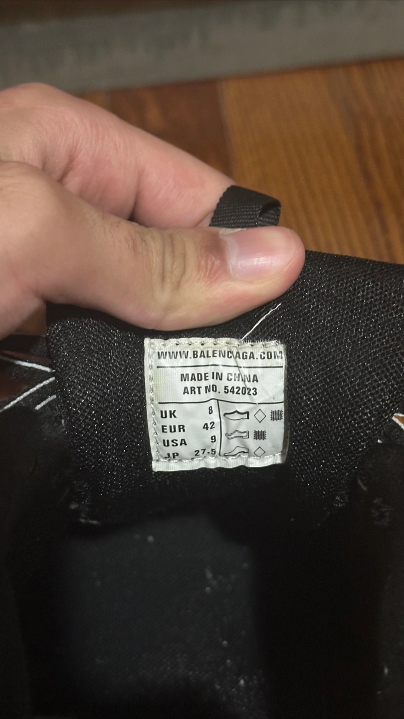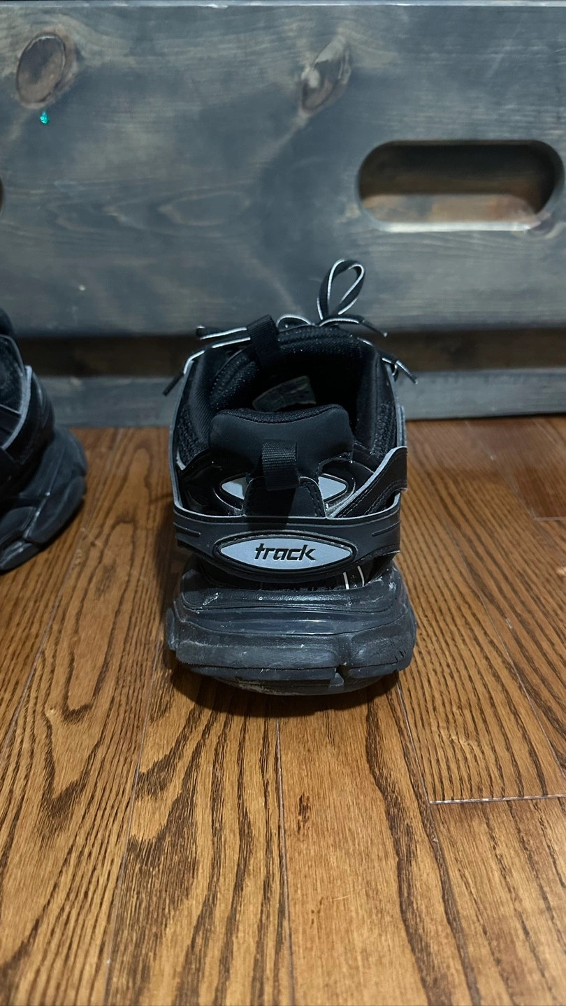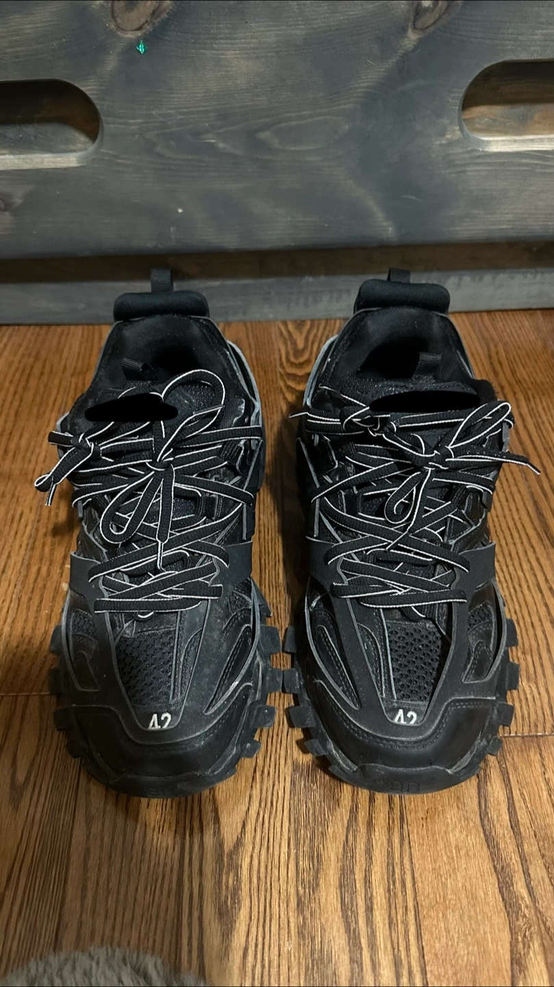 Selling a pair of Balenciaga Track sneakers in black. They are in used condition, with some signs of wear as seen in the photos. Size is US 9, EUR 42. Please take a look at the pictures for details!