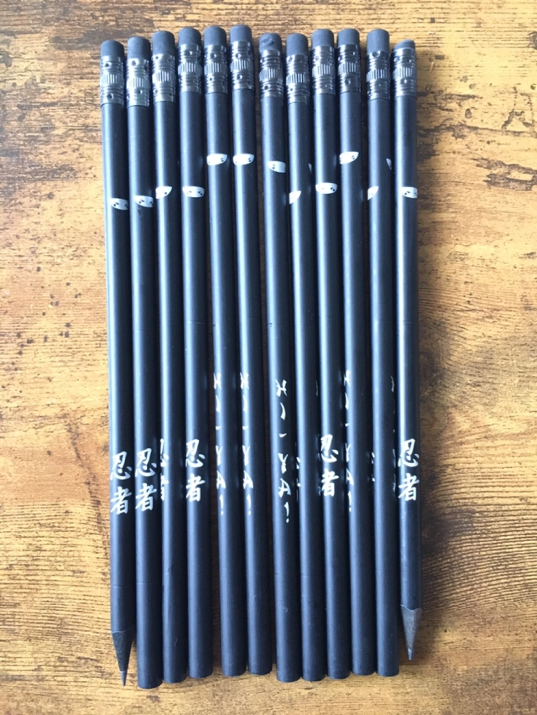 I have a set of black pencils for sale! They have some Japanese writing on them. Perfect for school, work, or just doodling around. I have 12 in total but I would prefer to give away 6 to each person.