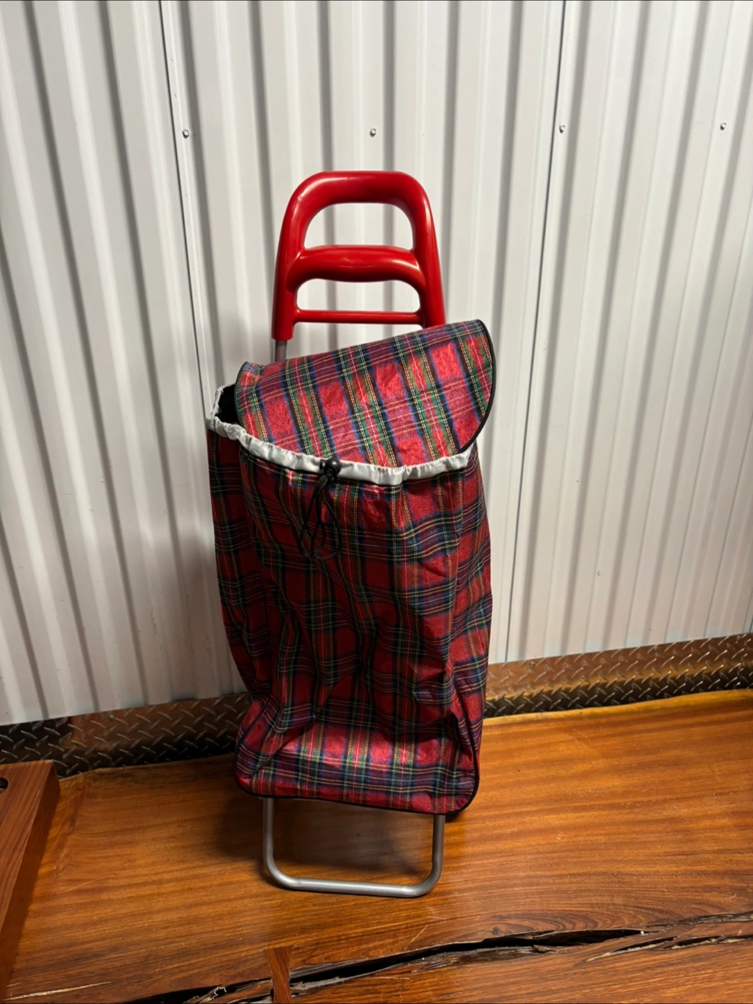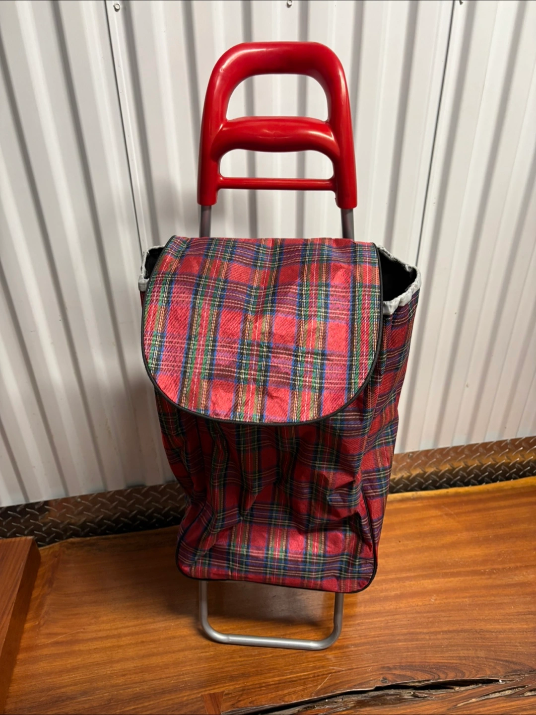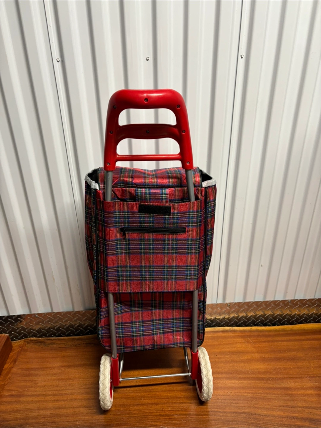 91Selling a red plaid shopping cart. It's in great condition and ready to help you with your grocery runs or trips to the farmer's market! The cart features a sturdy frame and a spacious interior for all your items.