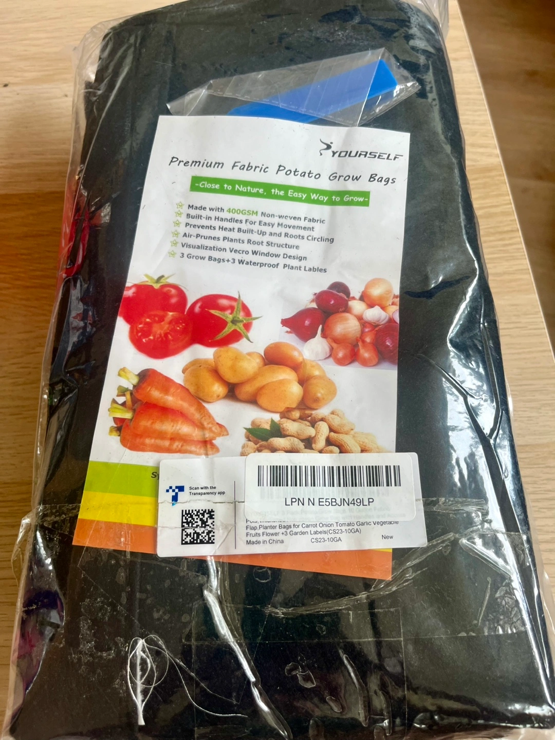 I'm selling a set of Yourself Premium Fabric Potato Grow Bags. These are brand new and still sealed in the original packaging! They're made with 400GSM non-woven fabric and have built-in handles for easy moving. They also feature a visualization velcro window design and come with 3 grow bags and 3 waterproof plant labels. Perfect for growing potatoes, carrots, onions, tomatoes, garlic, and more!