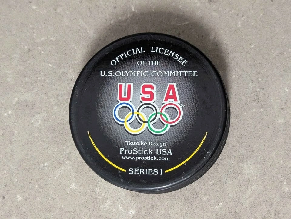 Selling a commemorative 2002 USA Olympic Team hockey puck from the Salt Lake City Winter Olympics. This is an official Viceroy Manufacturing puck. The puck is from an adult-owned collection and is in good condition with only minor scuffs typical for its age. A great item for any collector of Olympic or hockey memorabilia. Great item for collectors or as a gift for someone this holiday season. Perfect item to be a stocking stuffer!