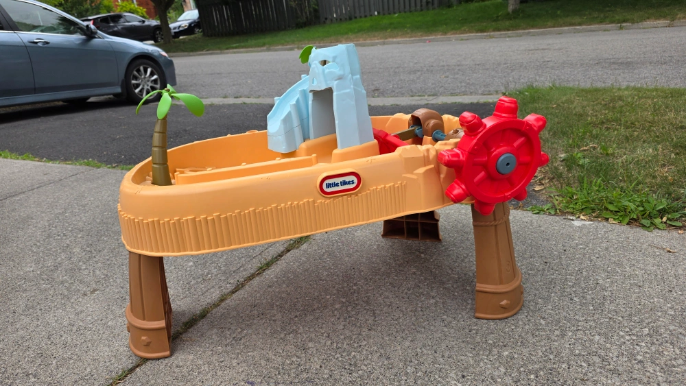 Ahoy there, mateys! Set sail for adventure with this Little Tikes Anchors Away Pirate Ship. Perfect for little pirates who love to splash and play, this sturdy water table features a spinning wheel, a squirting shark, and plenty of room for imaginative fun. Get ready to create some waves!