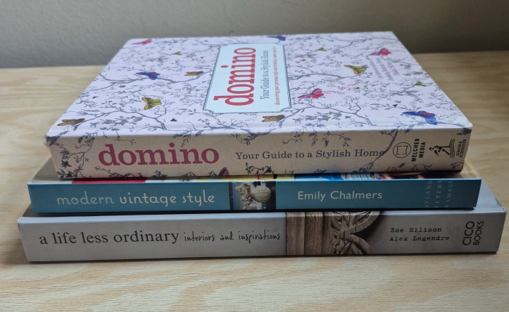 Included are, Domino: Your Guide to a Stylish Home, Modern Vintage Style, and A Life Less Ordinary. Great for inspiration or simply for display.