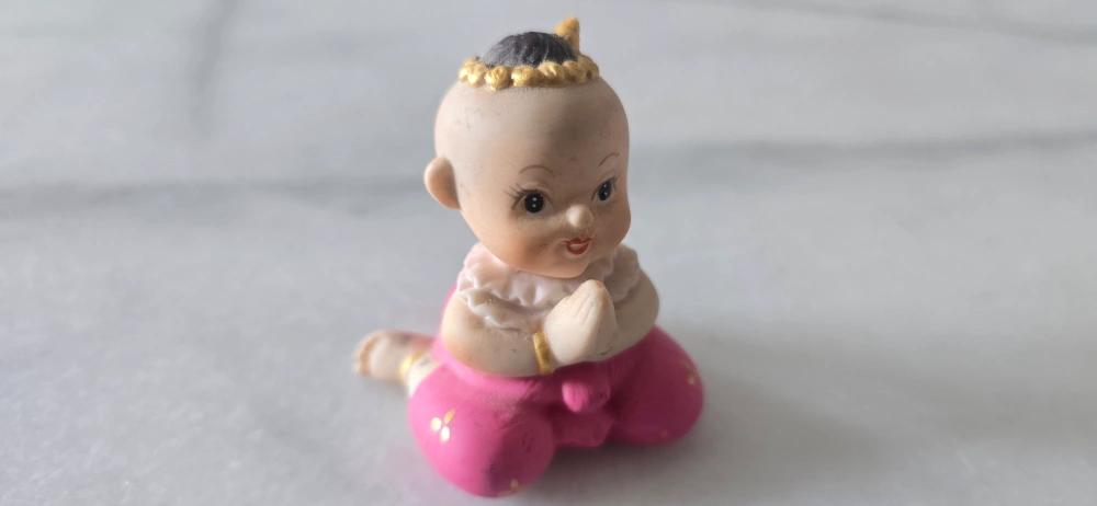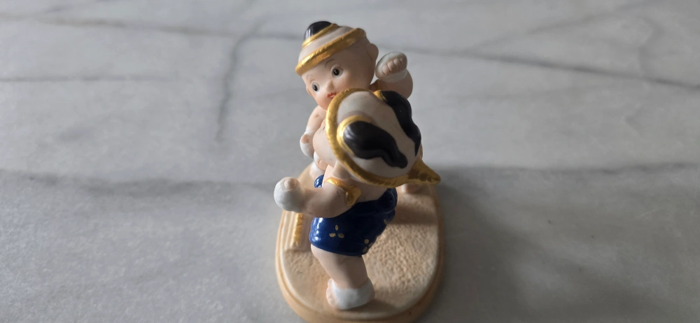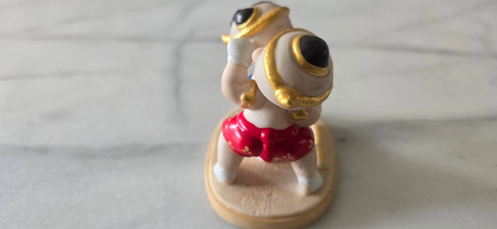 Here's a set of two adorable Muay Thai Boran ceramic figurines! They're in great shape and would make a lovely addition to any collection or a cute decorative piece for your home. One figurine depicts two firgures boxing, priced at $30 and the other shows a baby in a praying position priced at $15.