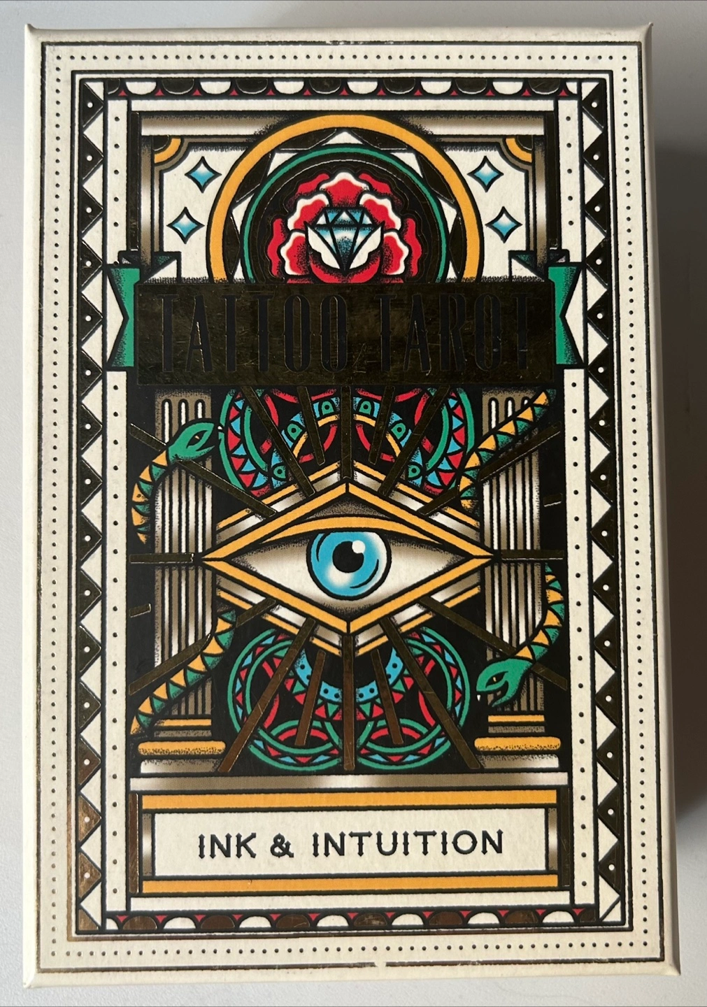 Selling brand new: Tattoo Tarot: Ink & Intuition deck. It's a 78-card tarot deck reimagined by contemporary illustrator and tattoo artist Megamunden. The deck and booklet are all you need to interpret the cards and conduct your own readings