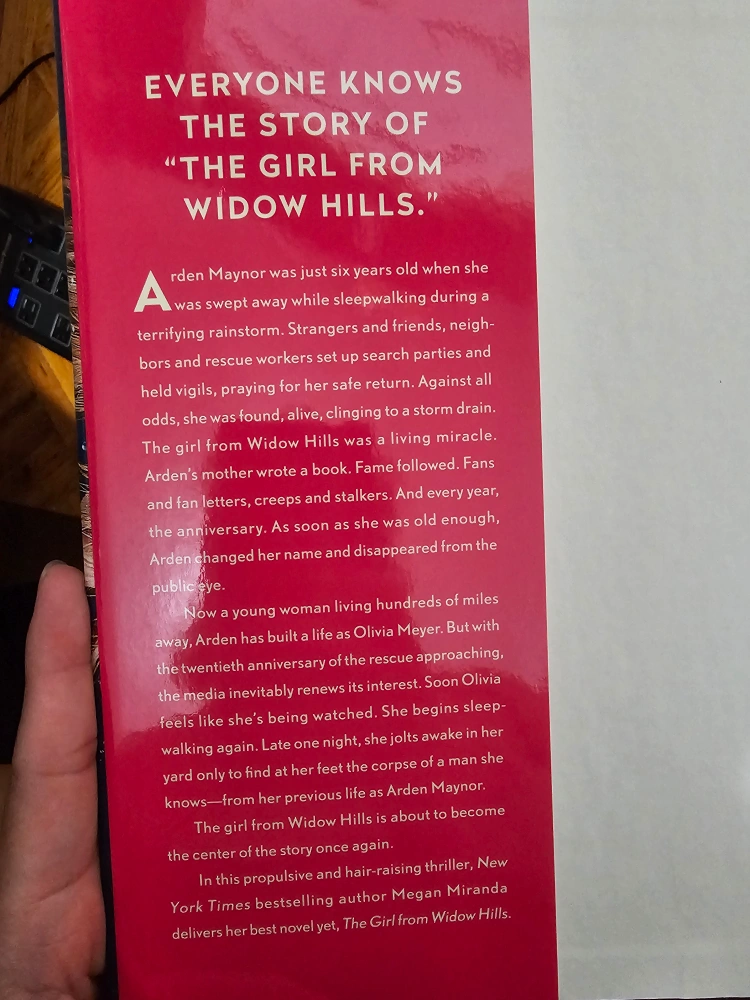 Selling "The Girl From Widow Hills" by Megan Miranda, a novel. It's a Reese's Book Club Selection. The story revolves around Arden Maynor, who was rescued as a child and the mystery that unfolds as the anniversary of her rescue approaches. It's a compelling and hair-raising thriller by the New York Times bestselling author of "The Last House Guest"