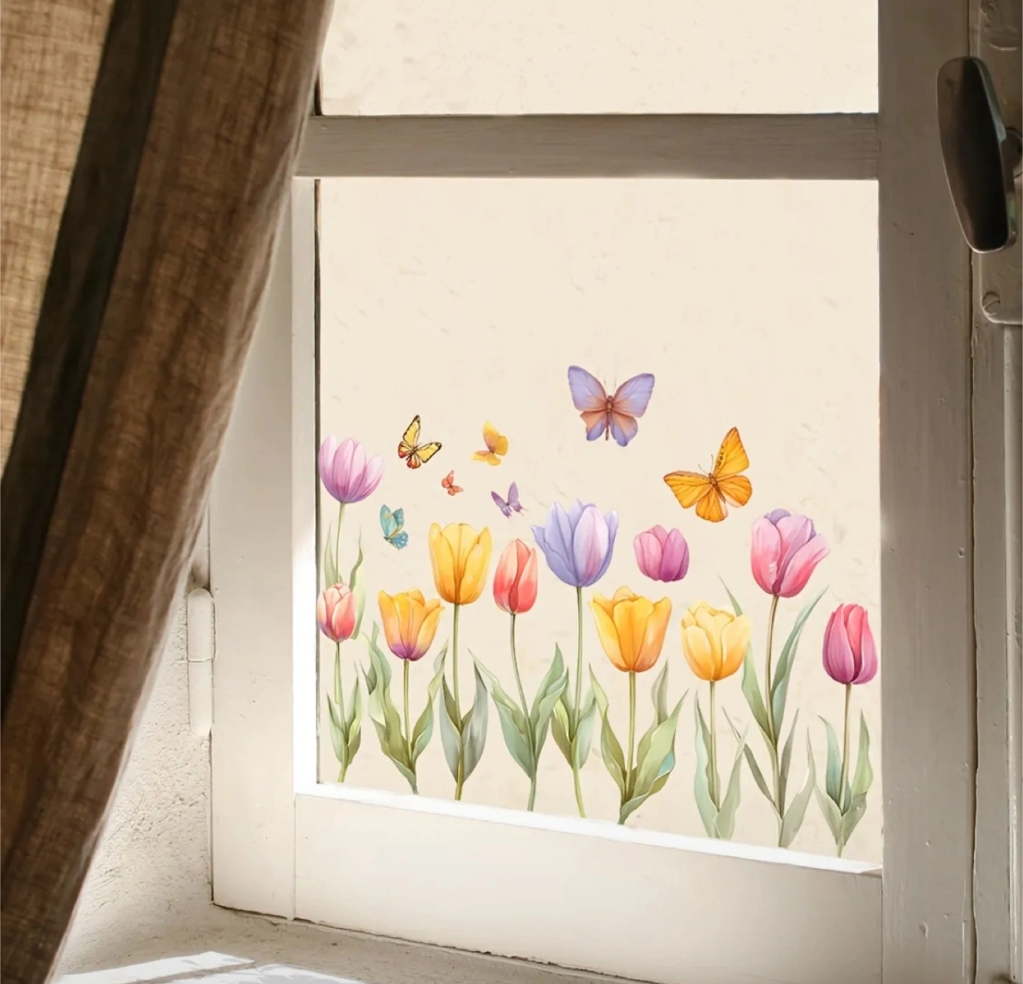 Add a touch of spring to your windows with this delightful floral and butterfly window cling! It measures approximately 40cm x 30cm, perfect for adding a bit of charm to any room. Easy to apply and remove, these clings are a lovely way to decorate without any fuss