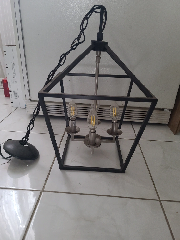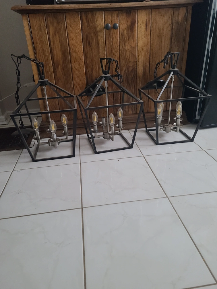 Selling a stylish black metal pendant light fixture. It's in great shape and ready to brighten up your space. Perfect for adding a modern touch to any room in your home! 3 available. Price is for all 3.