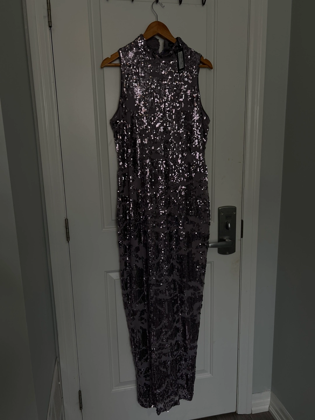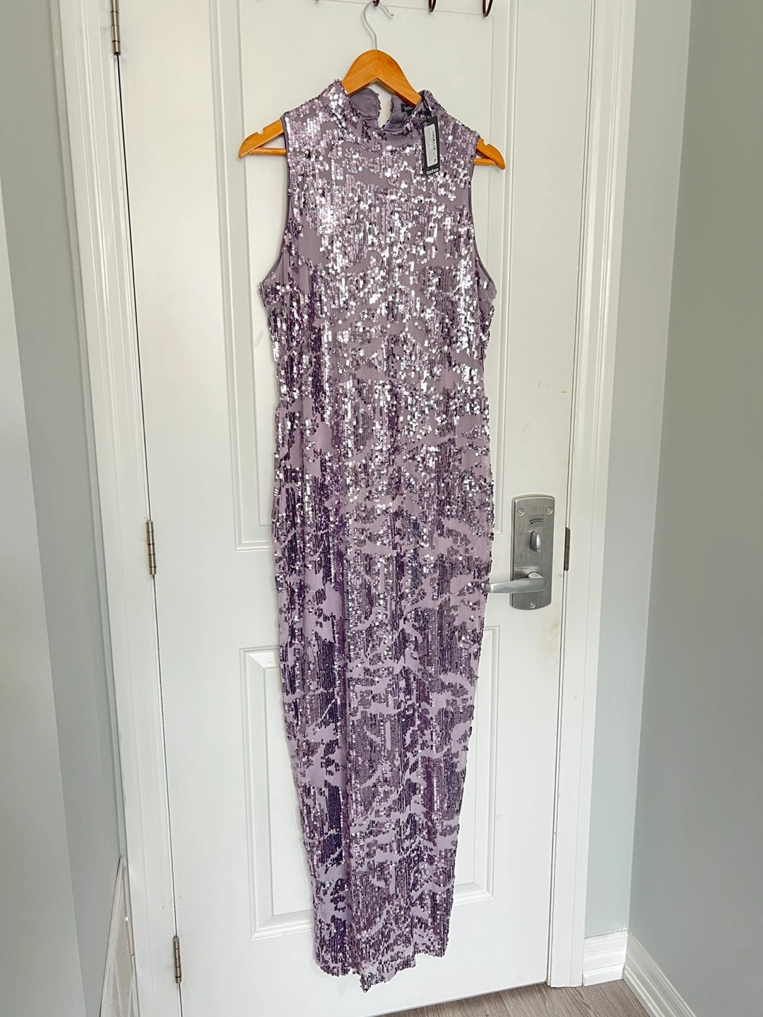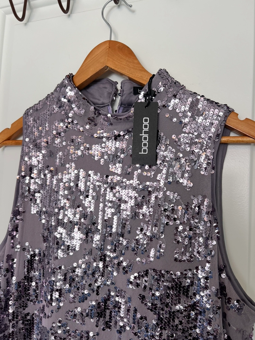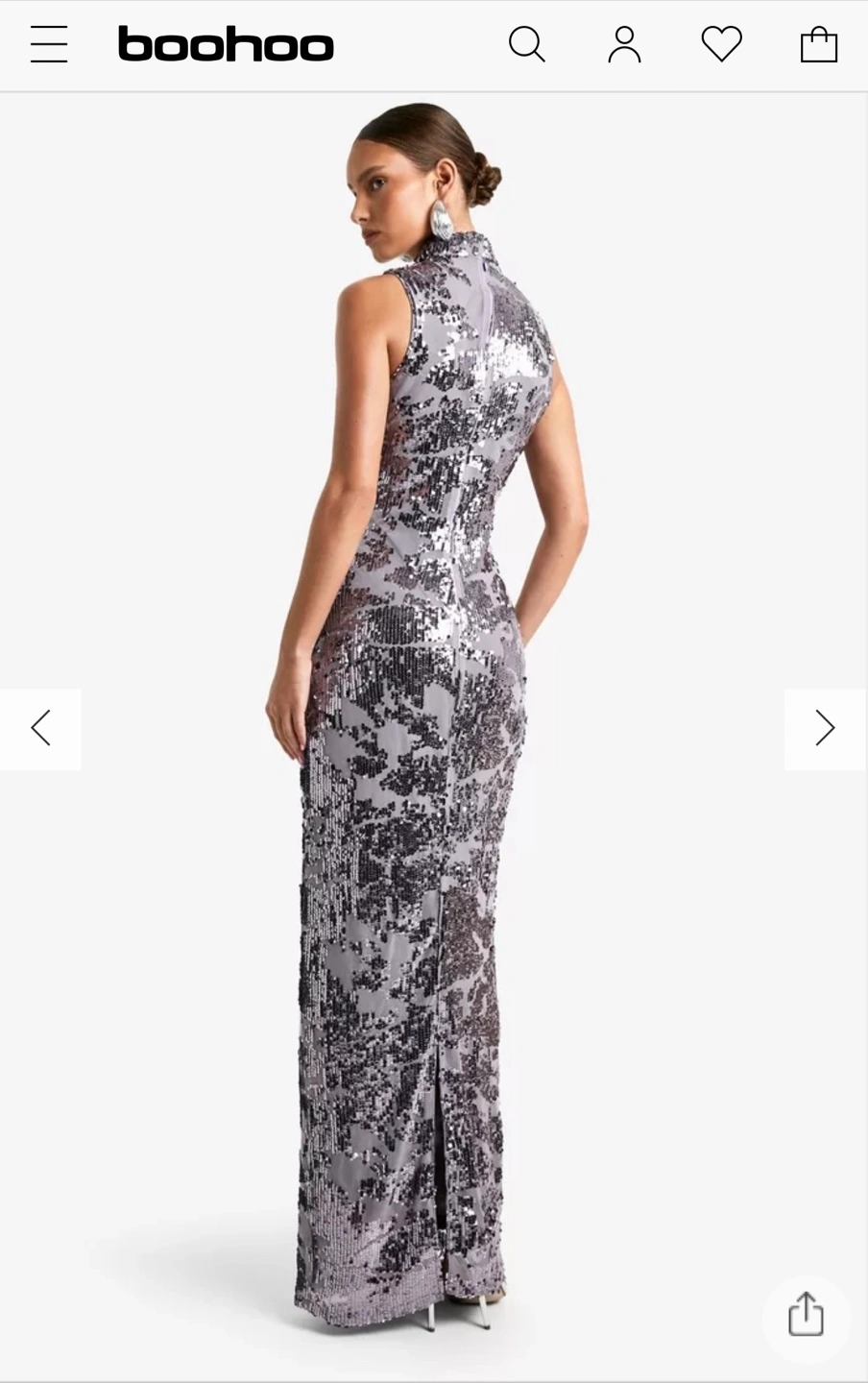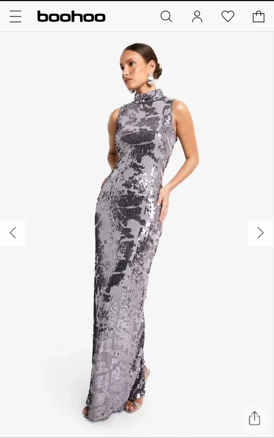 This is a beautiful Boohoo sequin maxi dress. It's perfect for a special occasion or a night out. The dress is in excellent condition and ready to wear!