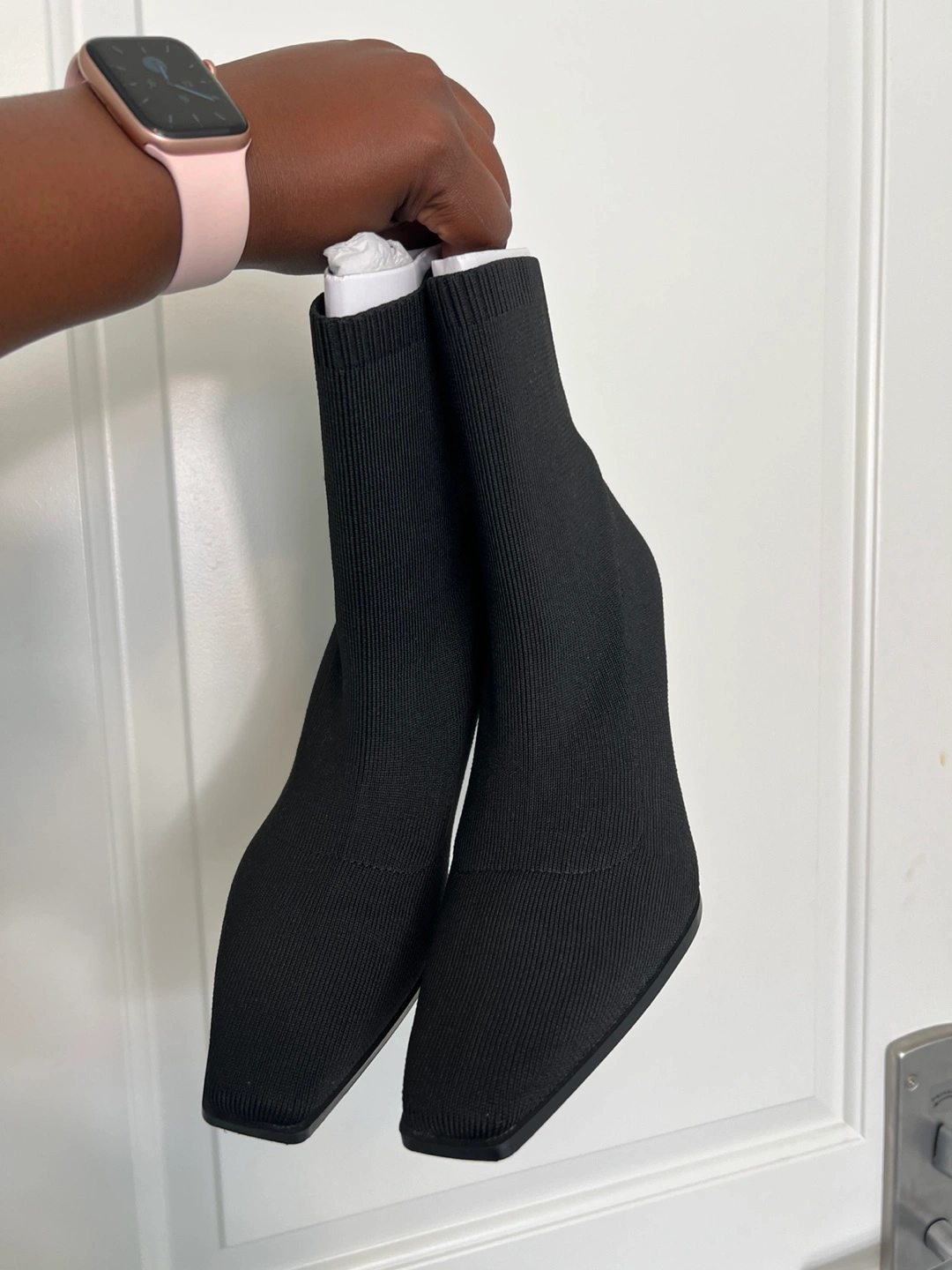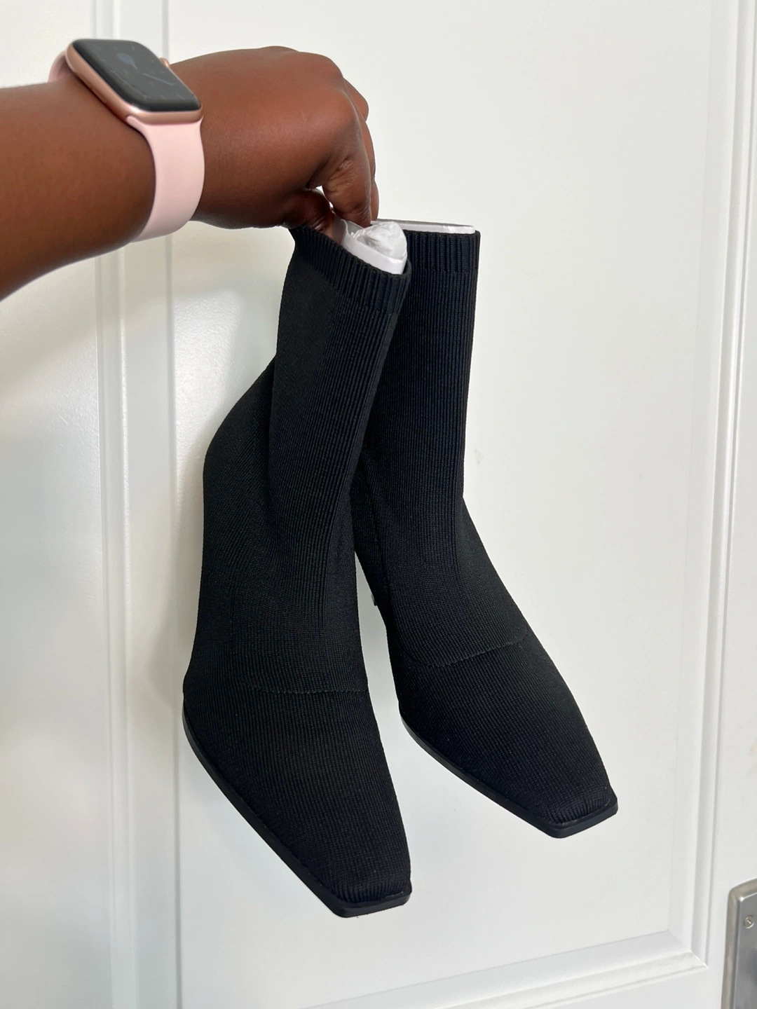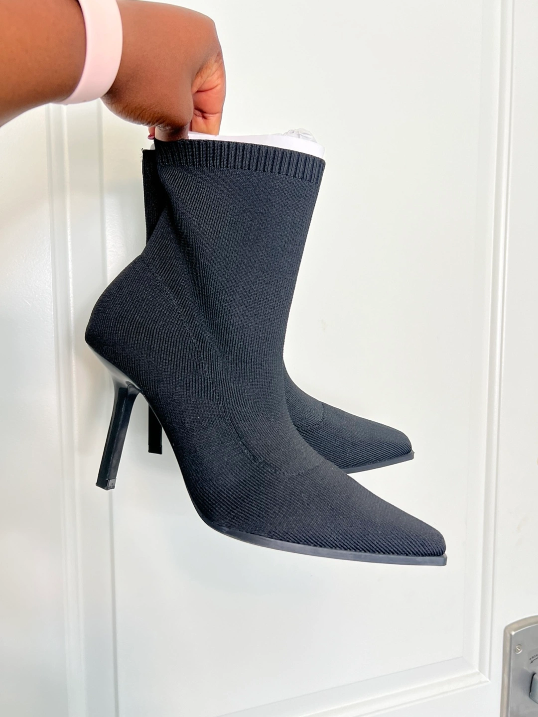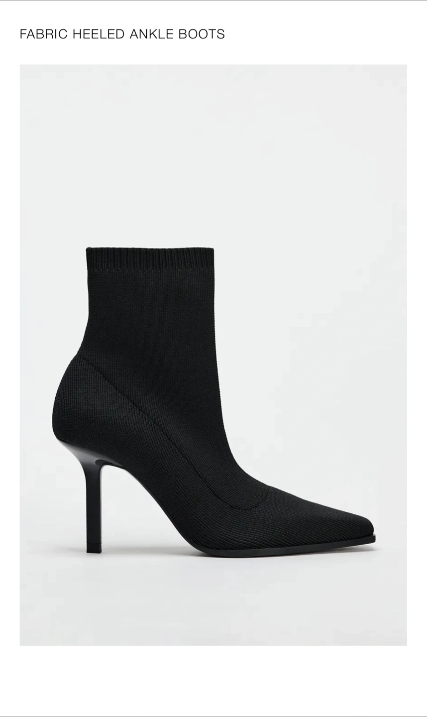 Selling a pair of Zara fabric heeled ankle boots in black. They're in great condition and ready for a new home!